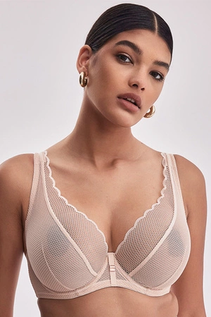 Biustonosz marki Alles. Model Chita M Plus. Posiada druty, które podpierają piersi odpowiednio je kształtując. Fiszbiny pionowe osadzone na bokach. Produkt posiada regulowane ramiączka z możliwością ich odpięcia. Haczyki do ramiączek metalowe. Biustonosz zapinany na haftki. Miejsce zapięcia: tył. Produkt został wykonany z 90% poliamid, 10% elastan. Produkt damski. Zalety produktu: Biustonosze braletki.