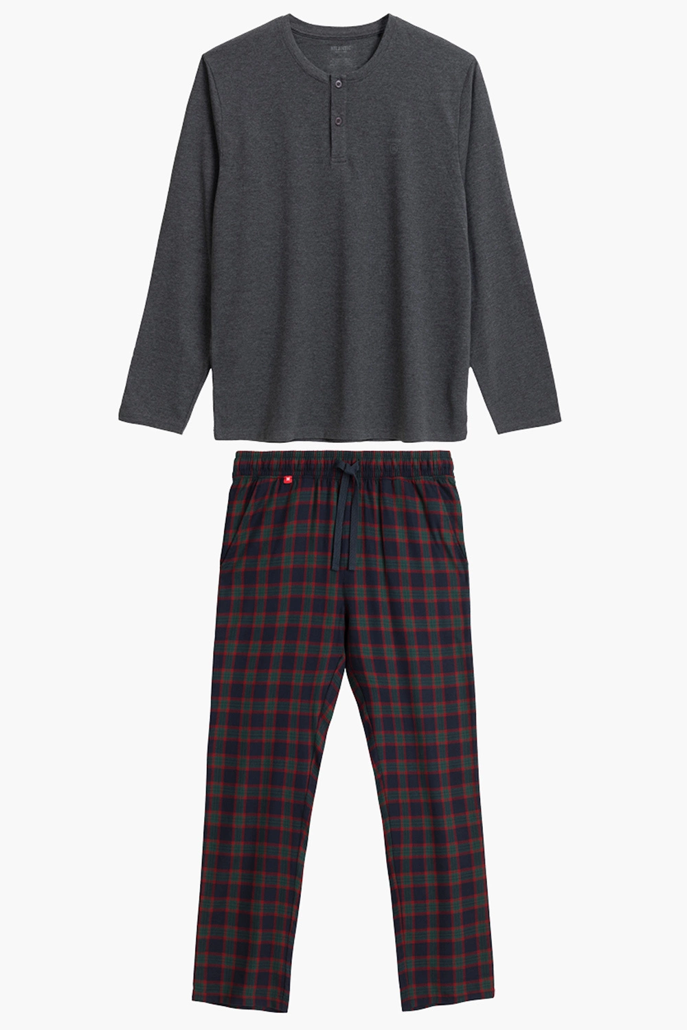 Atlantic NMP-375 Nocna piżama, szary melanż/granat/czerwony