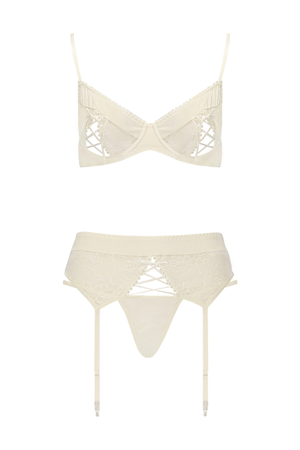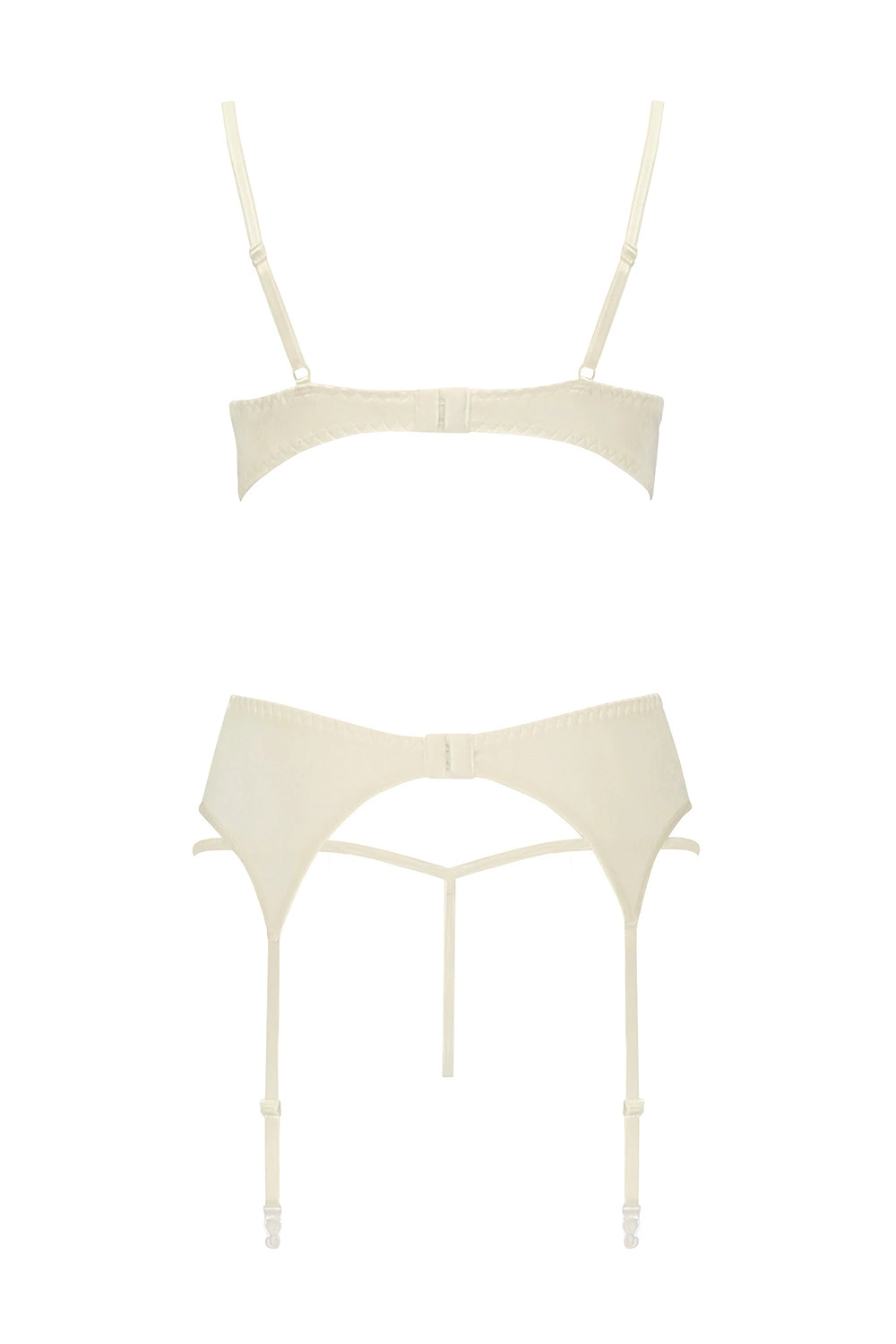 Avanua Bianca set Nocna komplet biustonosz + stringi + pas do pończoch, ecru