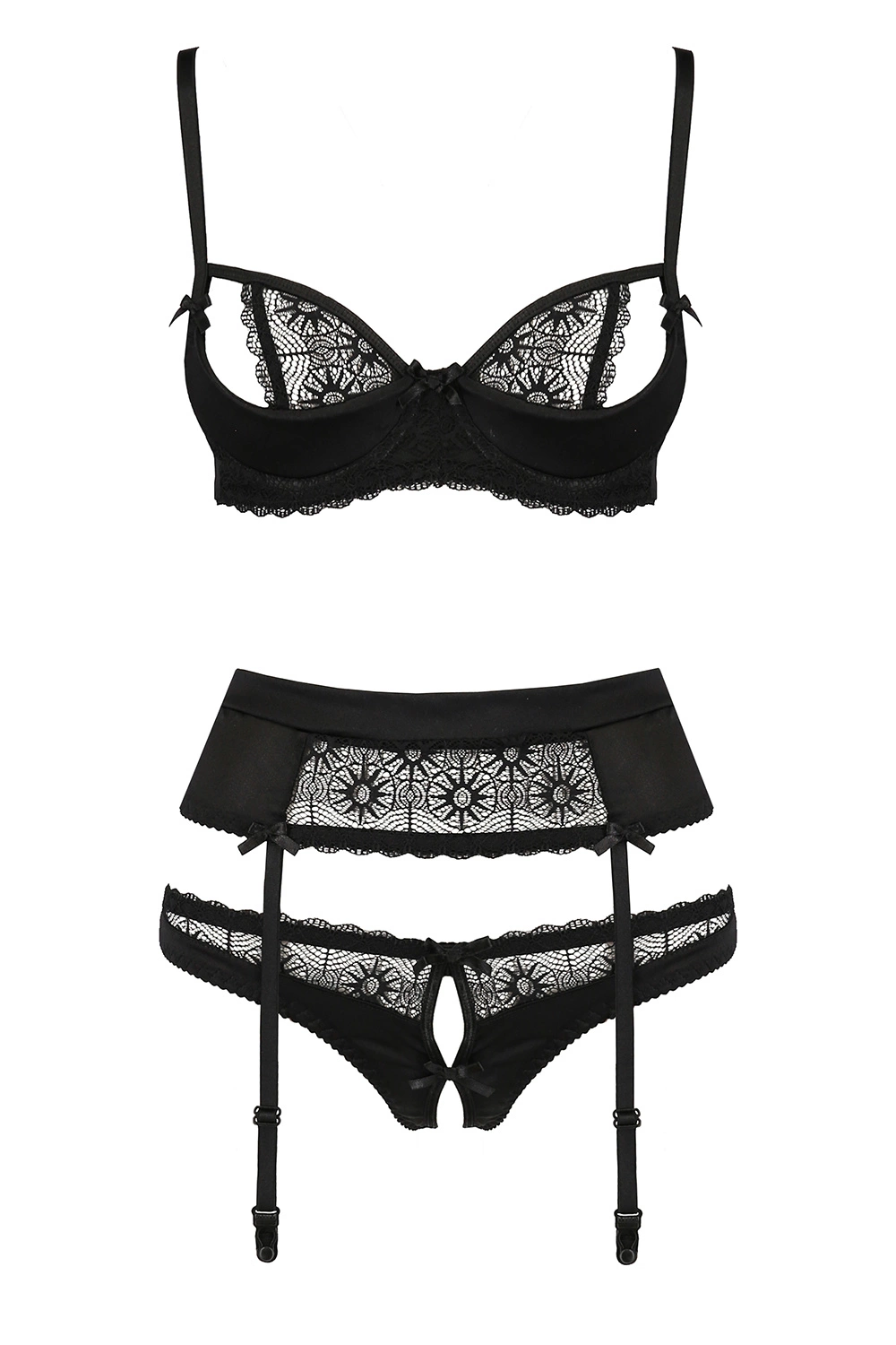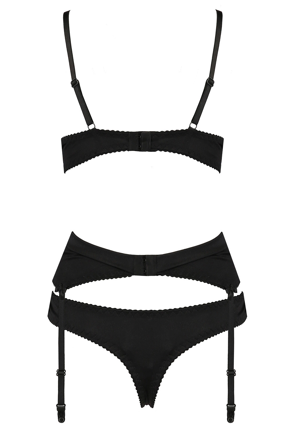 Avanua Hanan set Nocna komplet biustonosz + stringi + pas do pończoch, black