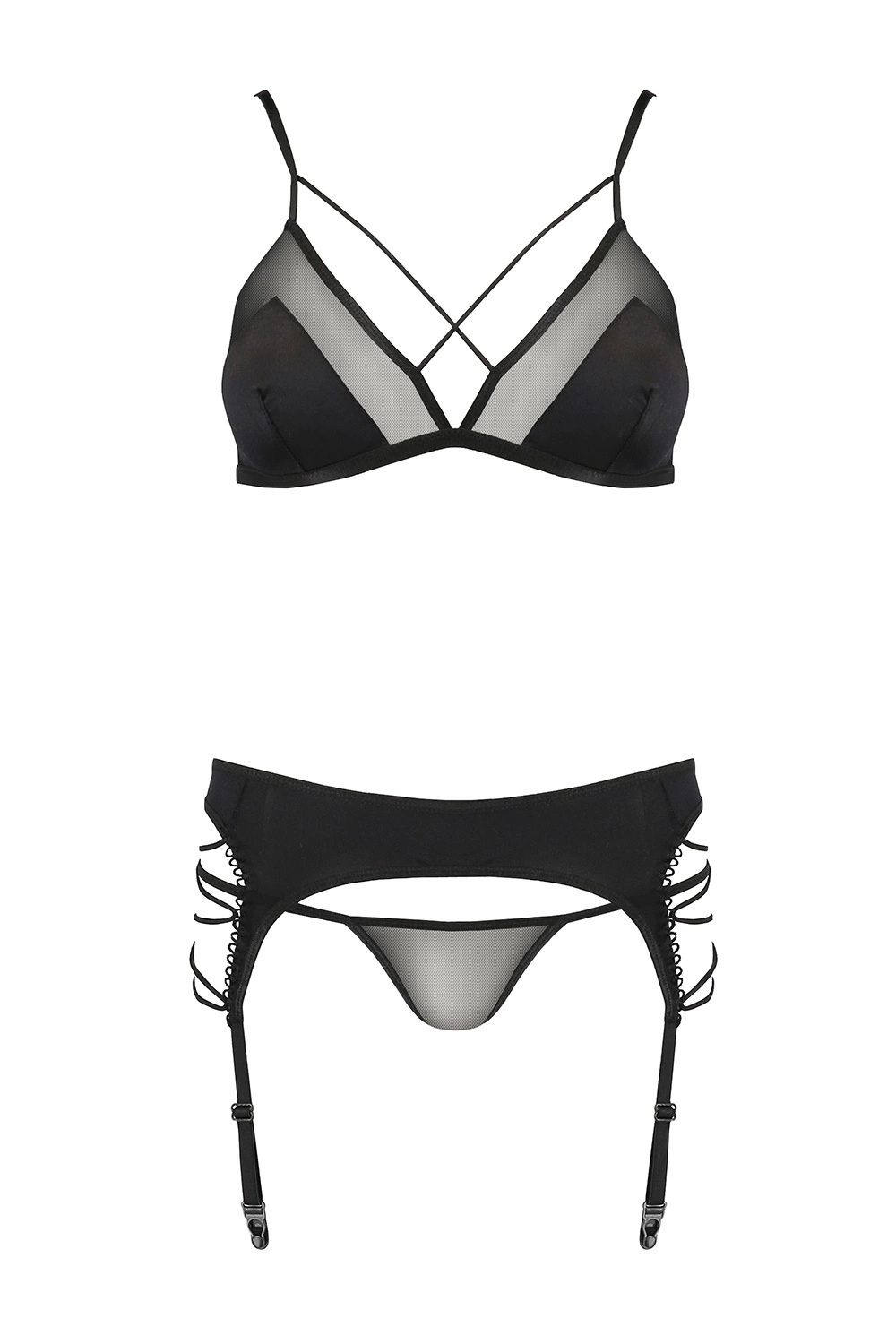 Avanua Quella set Nocna komplet biustonosz + stringi + pas do pończoch, black