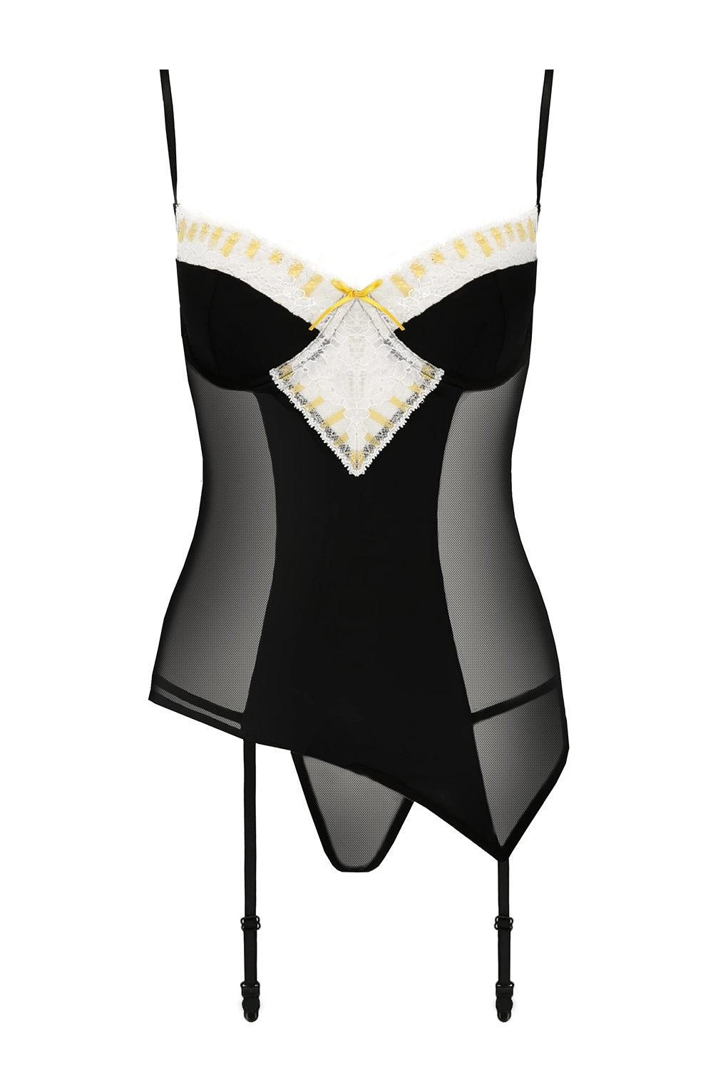 Gorset marki Avanua. Model Rania corset. Produkt został wykonany z 75% poliester, 15% poliamid, 10% elastan. Majtki biodrówki. Troczki są regulowane. Pas z troczkami. Produkt posiada regulowane ramiączka. Produkt damski. Posiada druty, które podpierają piersi odpowiednio je kształtując.