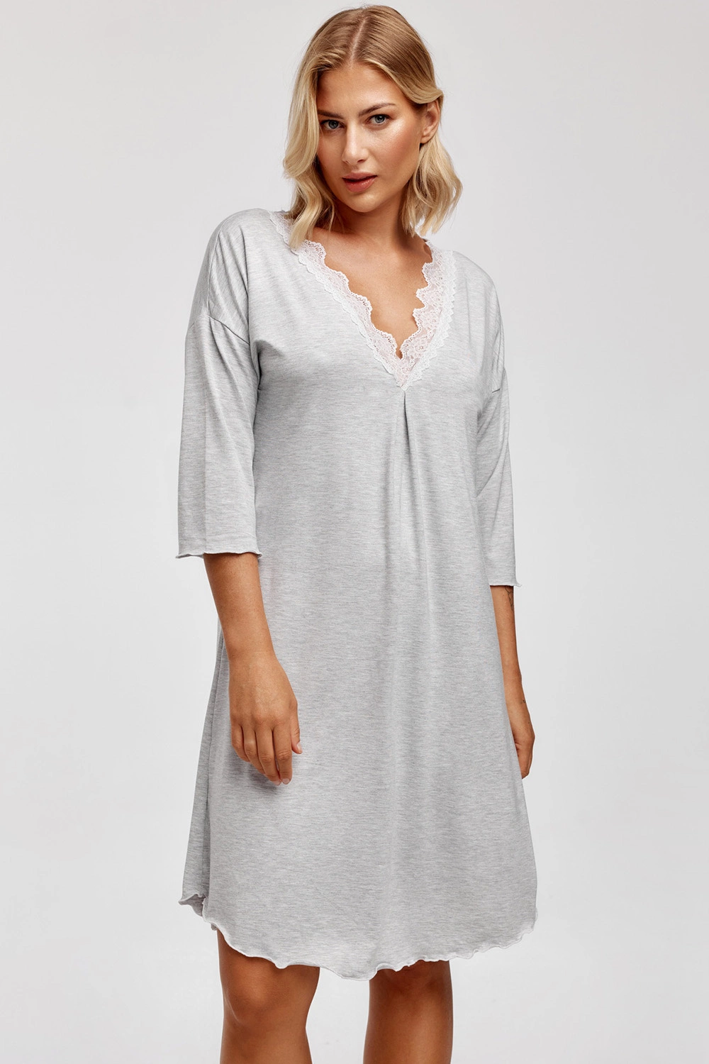 Nocna marki Azal. Model Koszula Nocna. Produkt został wykonany z 92% wiskoza, 8% elastan. Długość rękawa: 3/4. Długość: midi. Produkt damski. Rodzaj dekoltu: szpic.