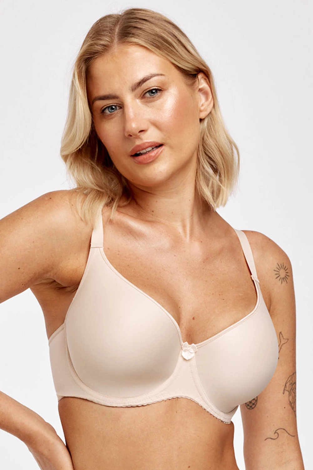 Biustonosz marki Azal. Model Sonia. Posiada druty, które podpierają piersi odpowiednio je kształtując. Produkt posiada regulowane ramiączka bez możliwości ich odpięcia. Haczyki do ramiączek metalowe. Biustonosz zapinany na haftki. Miejsce zapięcia: tył. Dwa rzędy haftek pionowych. Trzy stopnie haftek poziomych. Produkt został wykonany z 88% poliamid, 8% bawełna, 4% elastan. Produkt damski.