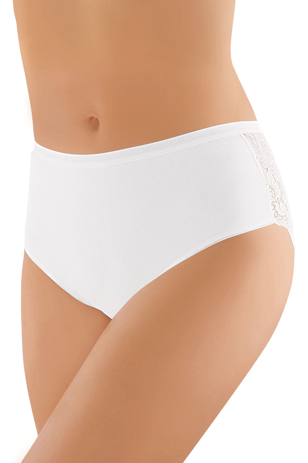 Majtki marki Babell. Model BBL 117. Produkt został wykonany z 92% bawełna, 8% elastan. Produkt damski. Zalety produktu: bawełniane koronkowe wysoki stan klasyczne. Majtki wysokie.
