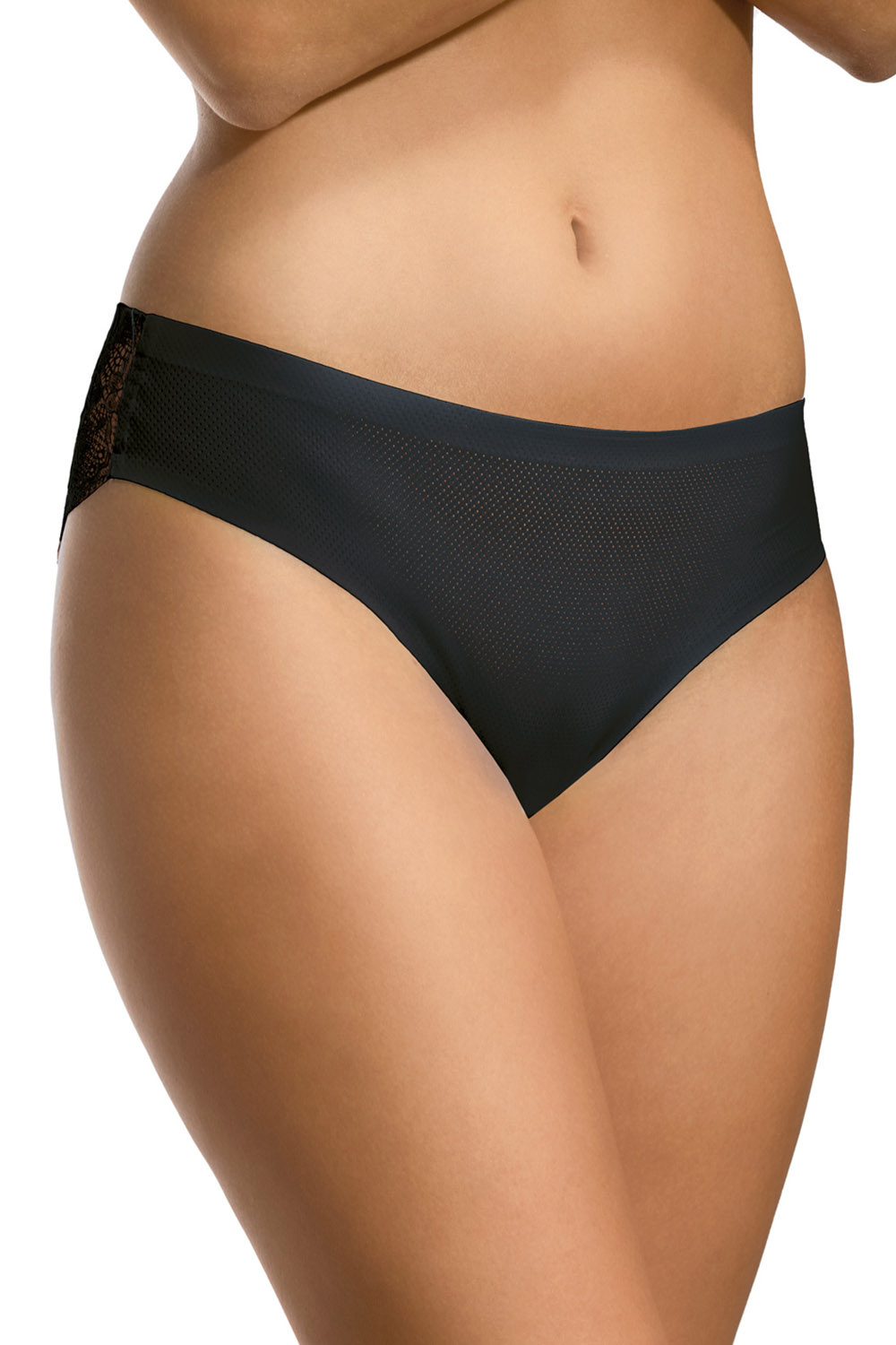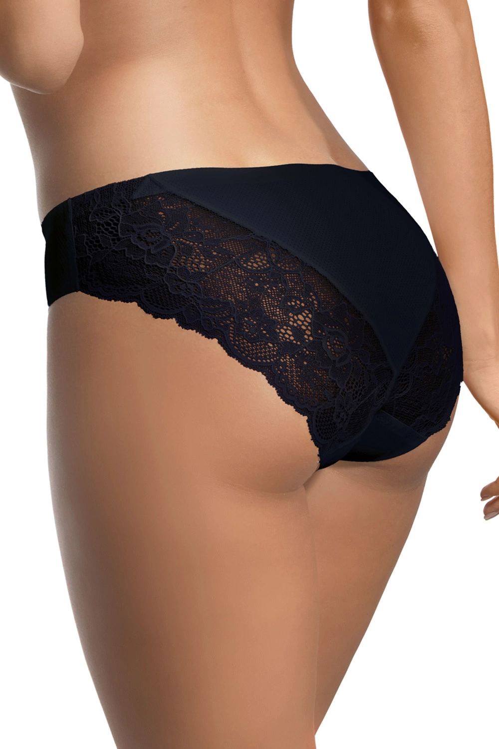 Majtki marki Babell. Model BBL 2003. Produkt został wykonany z 85% poliamid, 15% elastan. Zalety produktu: bezszwowe z koronką kobiece. Produkt damski. Bezszwowe wykończenie brzegów.