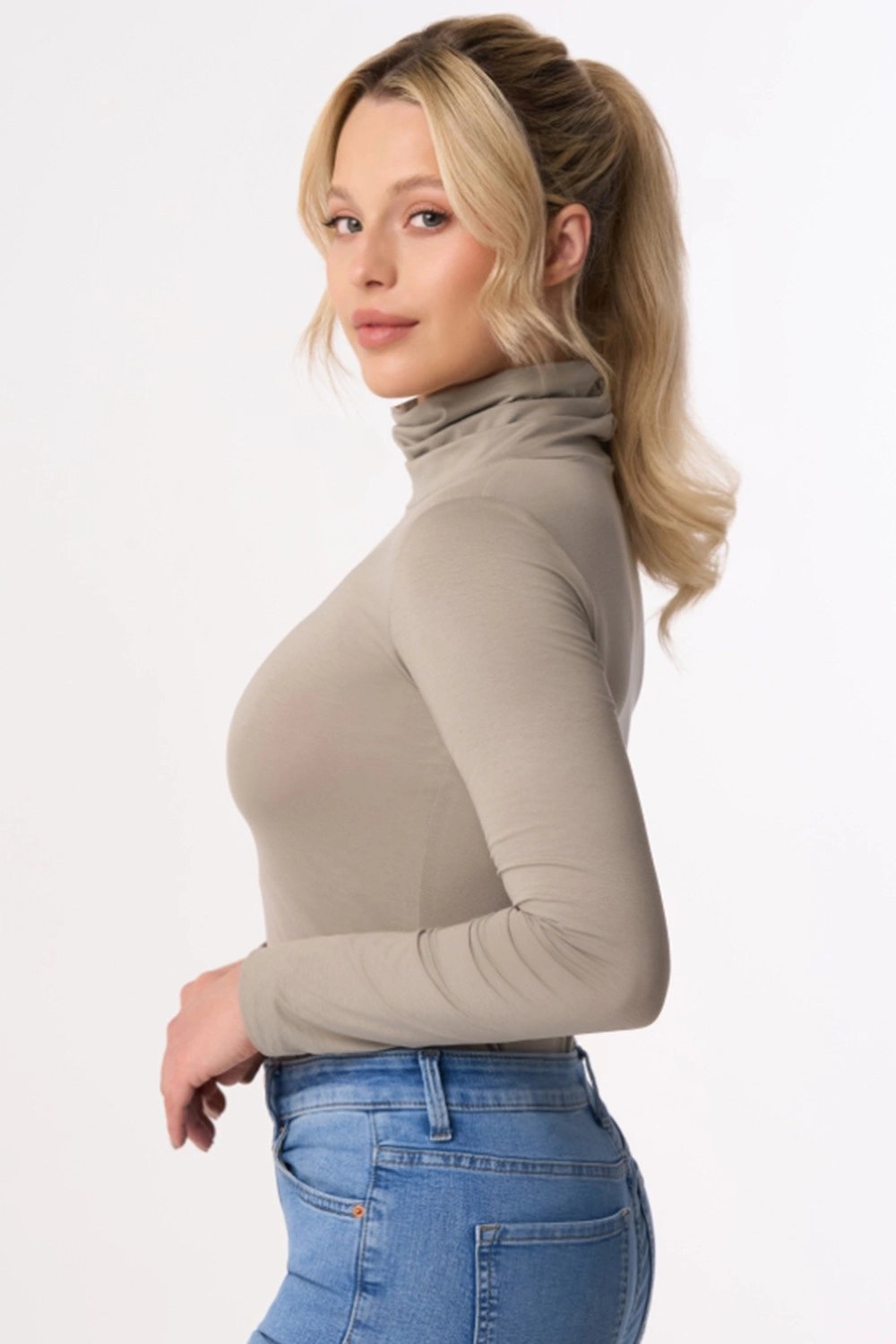Koszulka marki Babell. Model Beverly. Produkt został wykonany z 60% modal, 33% bawełna, 7% elastan. Produkt damski. Długość rękawa: długi rękaw. Rodzaj dekoltu: golf.