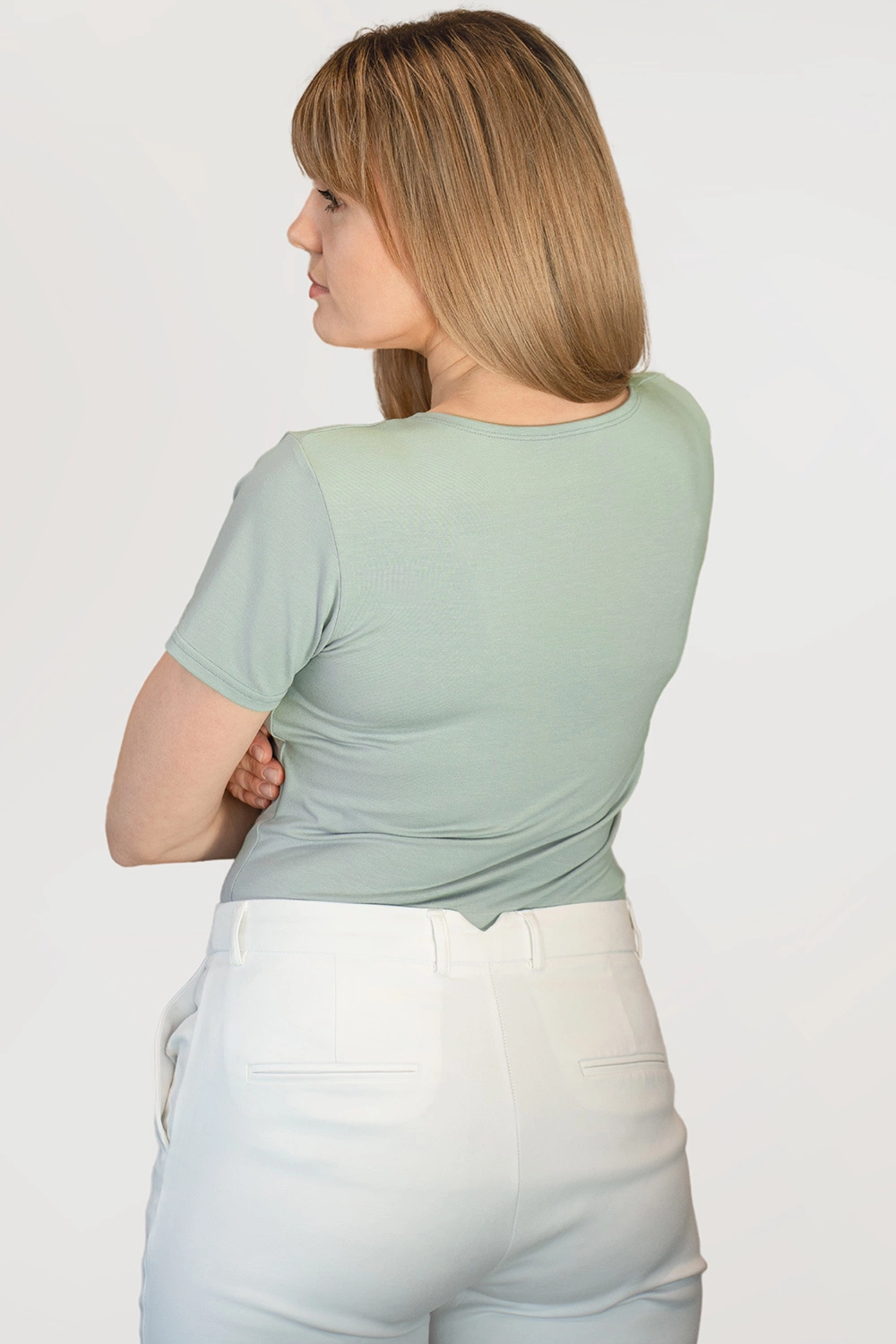 Koszulka marki Babell. Model Carla. Produkt został wykonany z 94% wiskoza, 6% elastan. Długość rękawa: krótki. Rodzaj dekoltu: okrągły. Produkt damski.