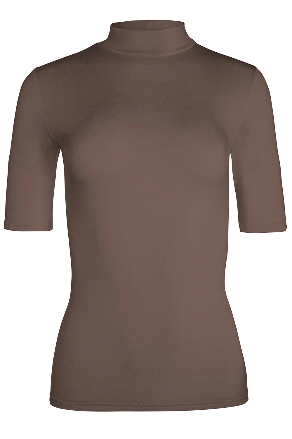 Bluzka marki Babell. Model Layla. Produkt został wykonany z 94% wiskoza, 6% elastan. Długość rękawa: krótki. Rodzaj dekoltu: stójka. Produkt damski.