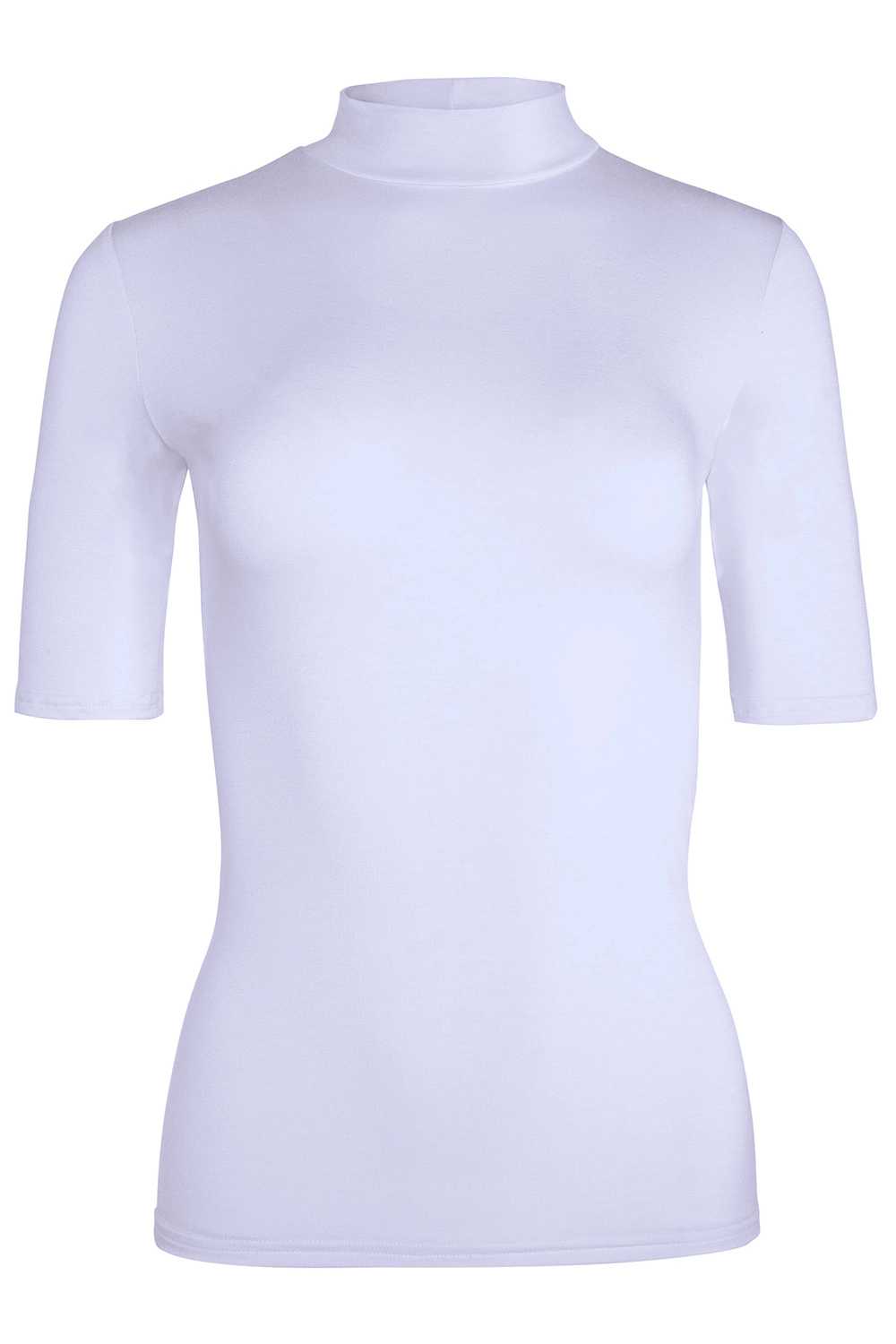 Bluzka marki Babell. Model Layla. Produkt został wykonany z 94% wiskoza, 6% elastan. Długość rękawa: krótki. Rodzaj dekoltu: stójka. Produkt damski.