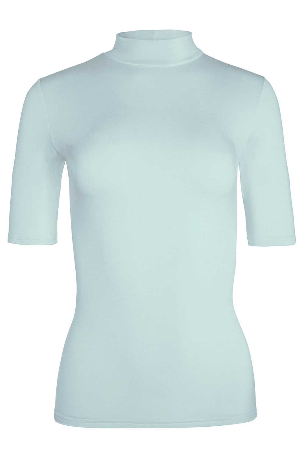 Bluzka marki Babell. Model Layla. Produkt został wykonany z 94% wiskoza, 6% elastan. Długość rękawa: krótki. Rodzaj dekoltu: stójka. Produkt damski.