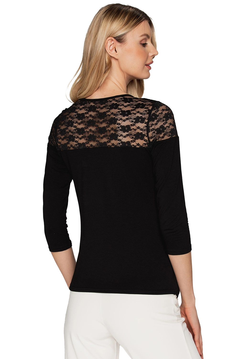 Bluzka marki Babell. Model Melanie. Produkt został wykonany z 94% wiskoza, 6% lycra. Zalety produktu: elegancka z koronką wygodna wiskoza. Długość rękawa: 3/4. Produkt damski. Rodzaj dekoltu: okrągły.