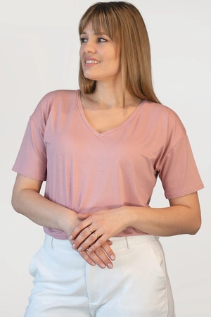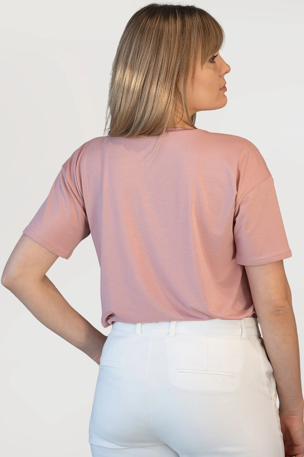 Koszulka marki Babell. Model Patty. Produkt został wykonany z 94% wiskoza, 6% elastan. Długość rękawa: krótki. Rodzaj dekoltu: w serek. Produkt damski.