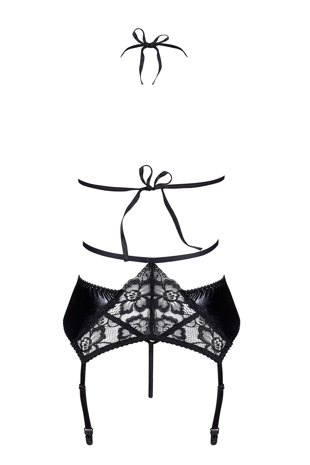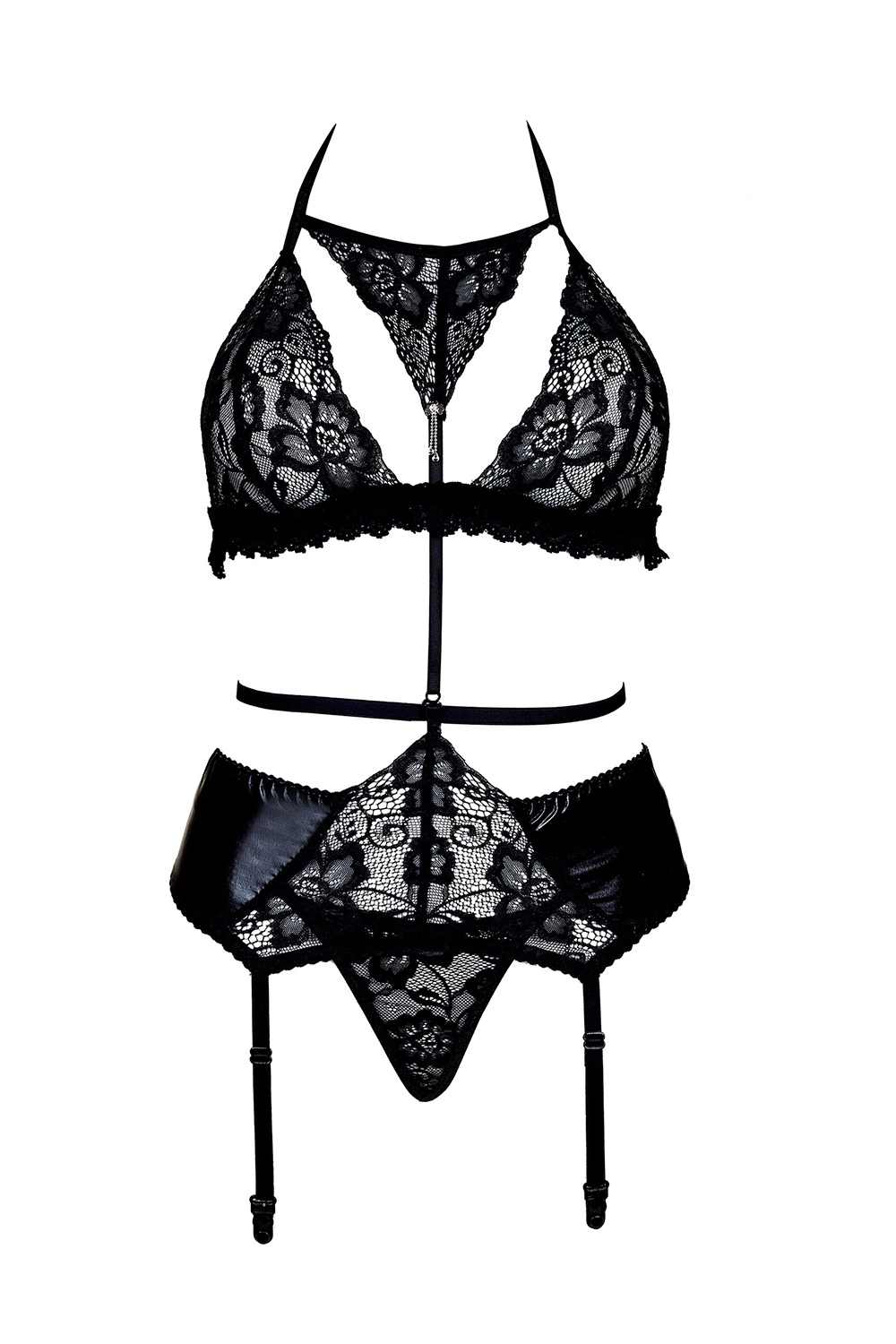 Beauty Night Alanis set BN6597 Nocna komplet biustonosz + stringi + pas do pończoch, black