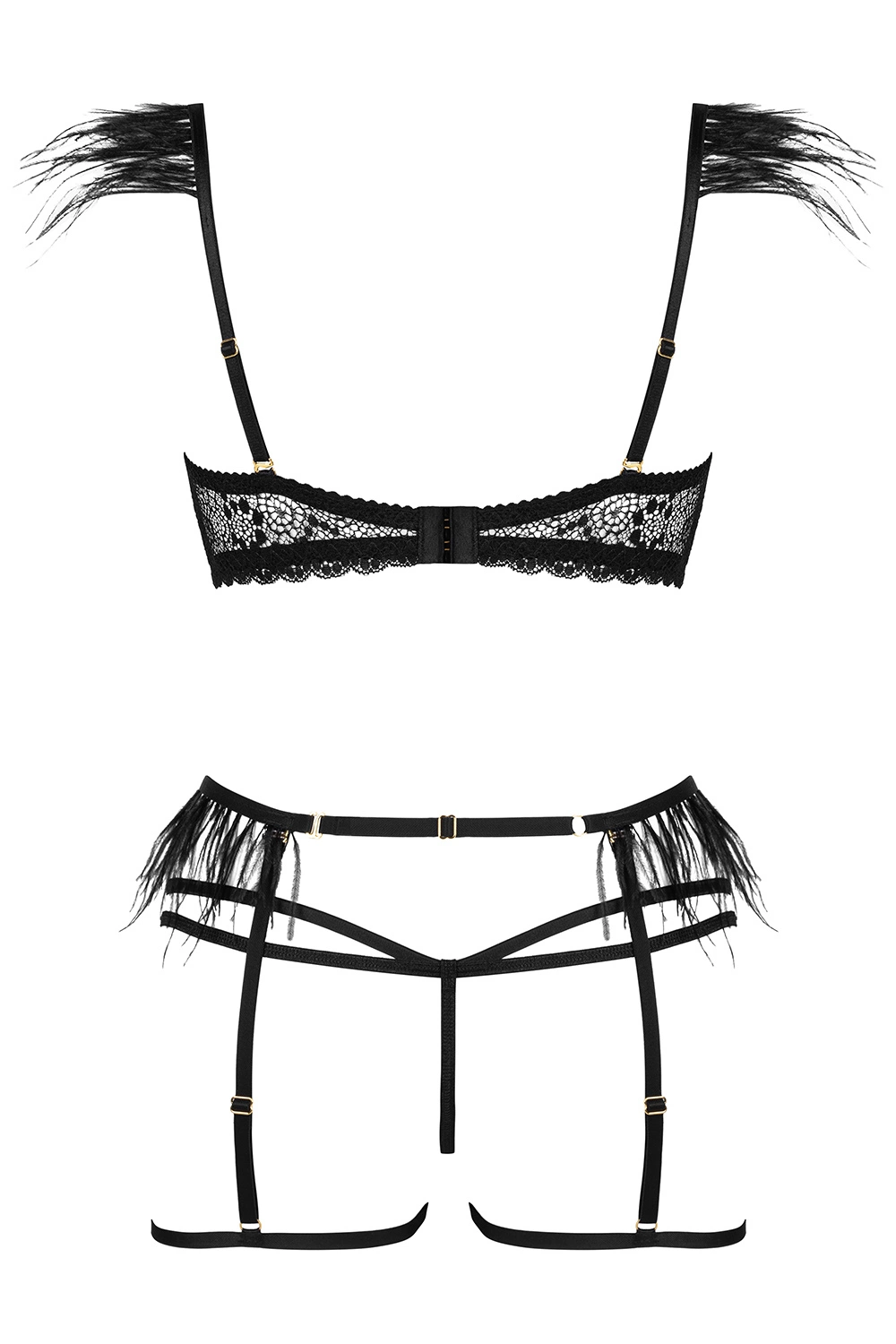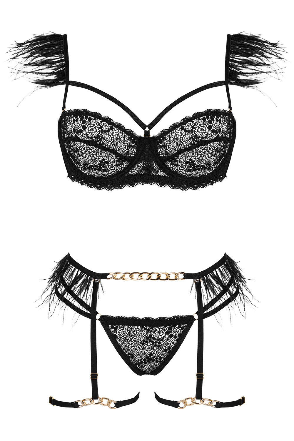 Beauty Night Crystal BN6713 Nocna komplet biustonosz + stringi + pas do pończoch, black
