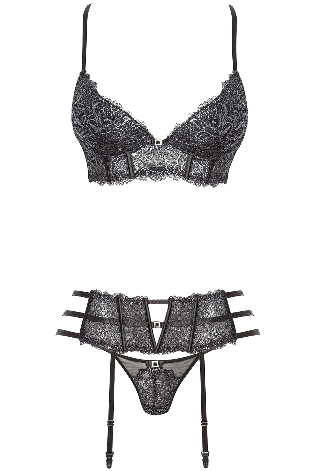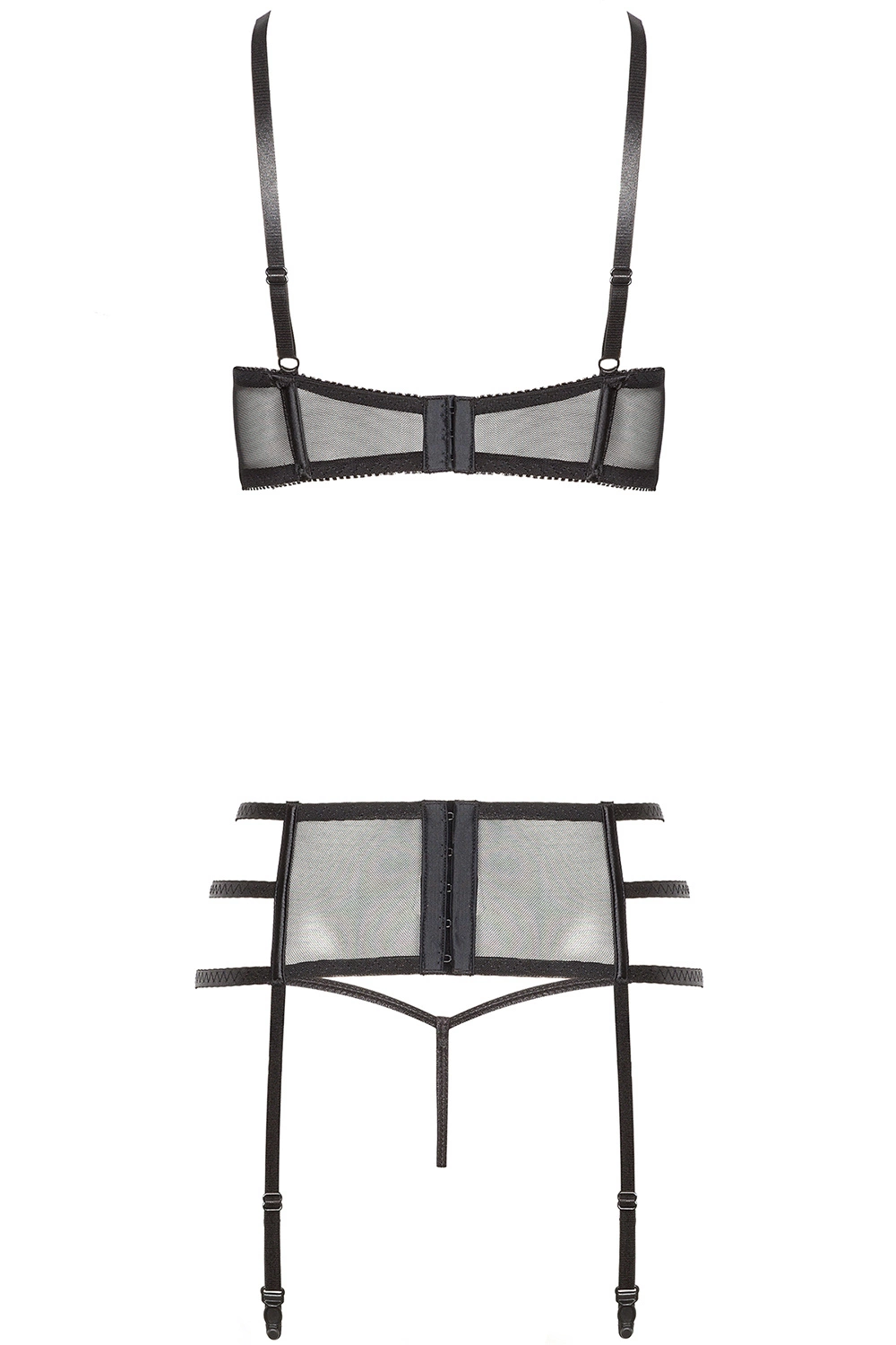 Beauty Night Ileen set BN6536 Nocna komplet biustonosz + stringi + pas do pończoch, black