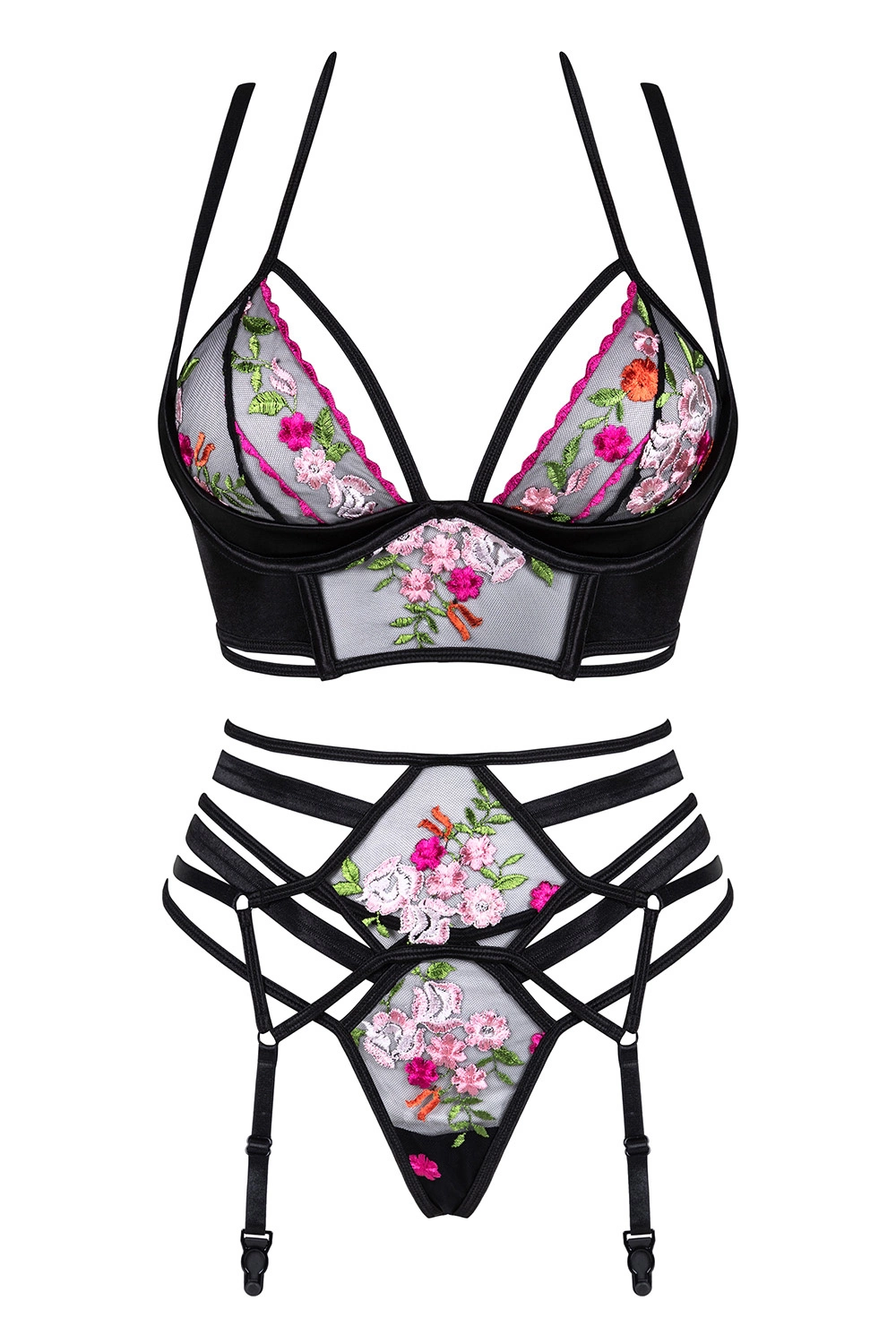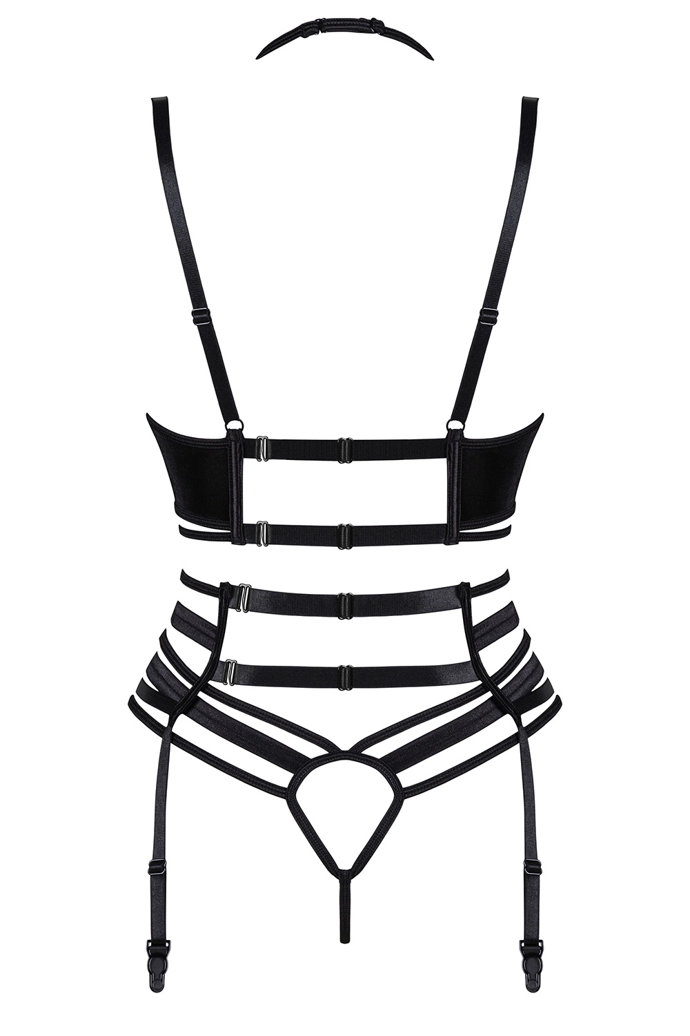 Beauty Night Joanna set BN6685 Nocna komplet biustonosz + stringi + pas do pończoch, black