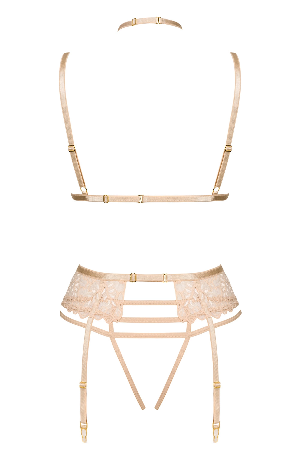 Beauty Night Noemi set BN6723 Nocna komplet biustonosz + stringi + pas do pończoch, nude