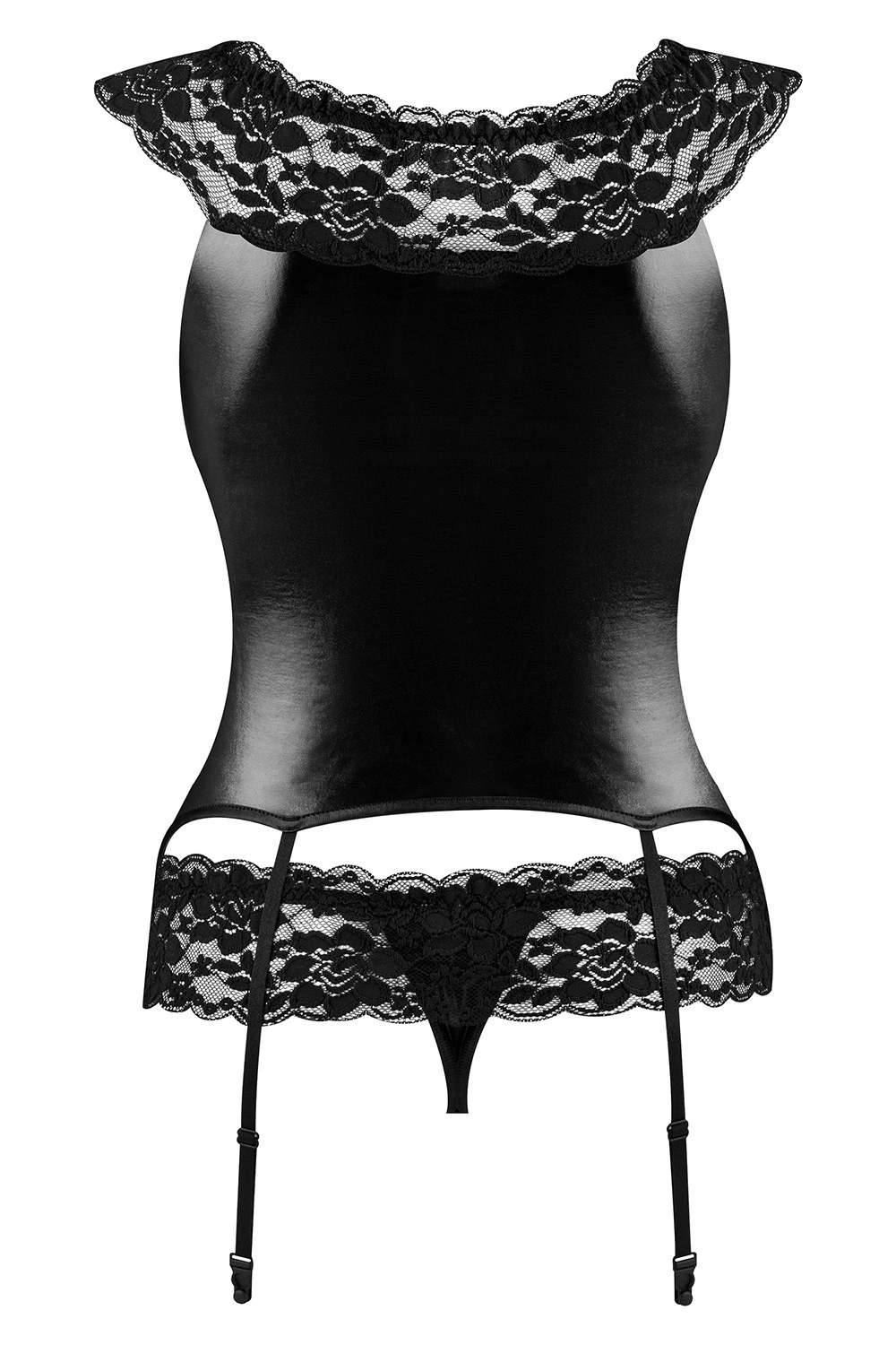 Beauty Night Raven set BN6750 Nocna komplet biustonosz + stringi + pas do pończoch, black