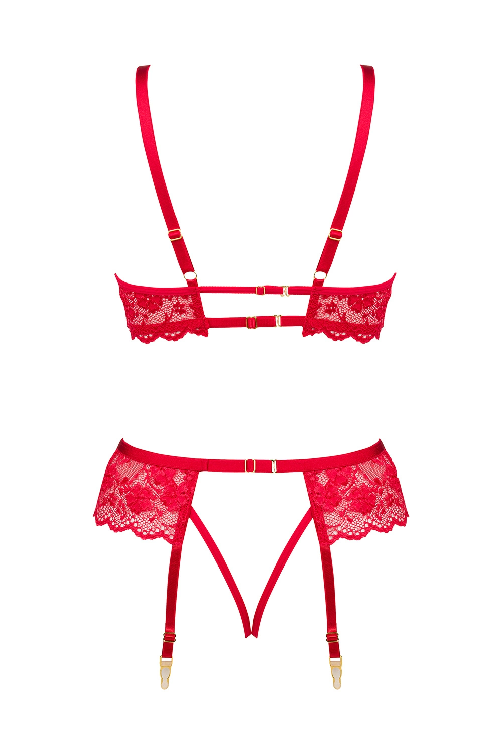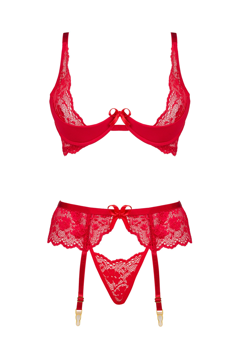 Beauty Night Rose set BN6696 Nocna komplet biustonosz + stringi + pas do pończoch, red