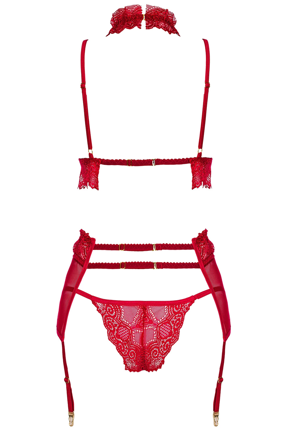 Beauty Night Velvet Sin set BN6762 Nocna komplet biustonosz + stringi + pas do pończoch, cherry