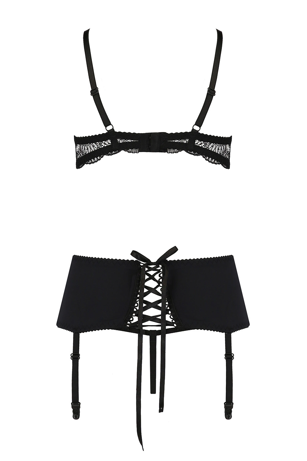 Casmir Alina set Nocna komplet półbiustonosz + stringi + pas do pończoch, black