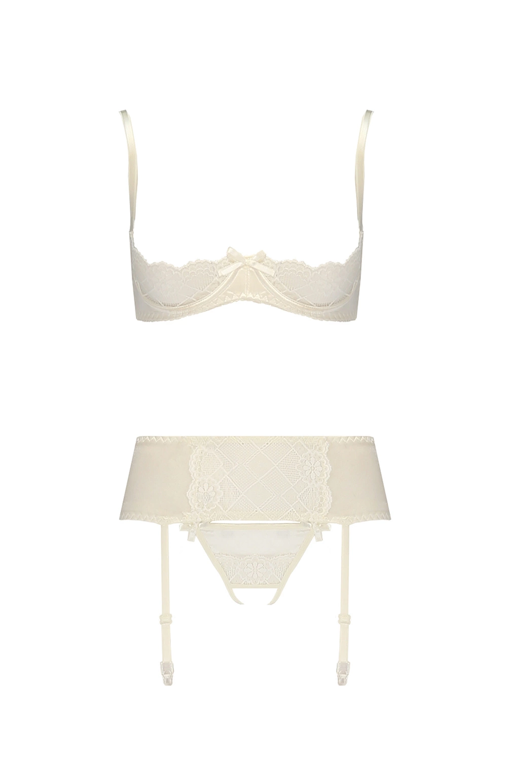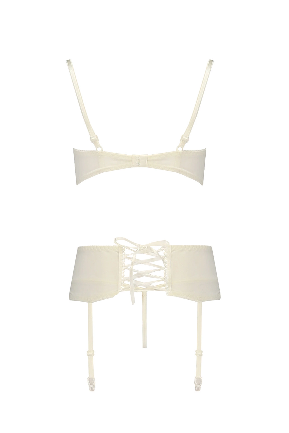 Casmir Aurelia set Nocna komplet półbiustonosz + stringi + pas do pończoch, ecru