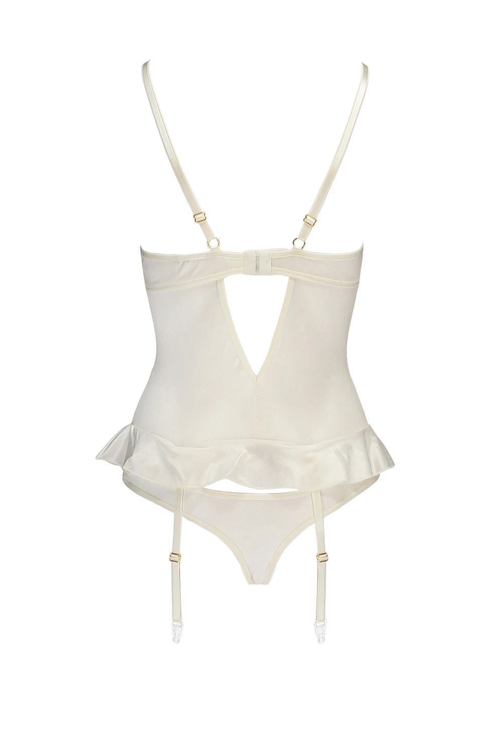Gorset marki Casmir. Model Inoe corset. Produkt został wykonany z 85% poliamid, 8% elastan, 7% poliester. Miejsce zapięcia: tył. Gorset zapinany na haftki. Pas z troczkami. Produkt damski. Produkt posiada regulowane ramiączka. Troczki są regulowane. Posiada druty, które podpierają piersi odpowiednio je kształtując.