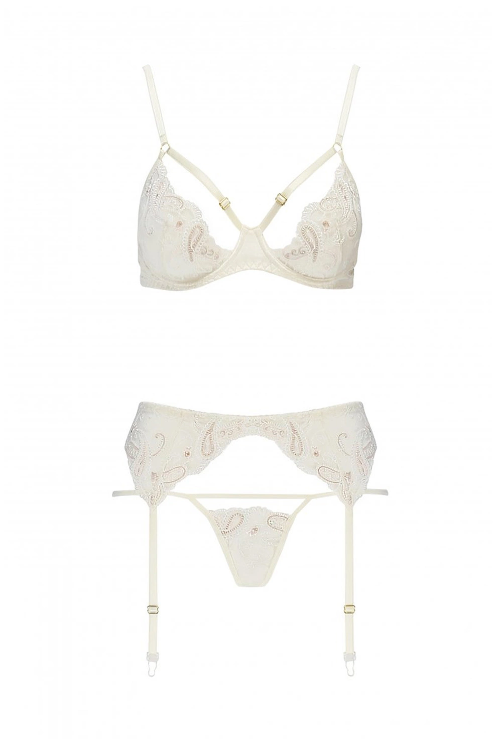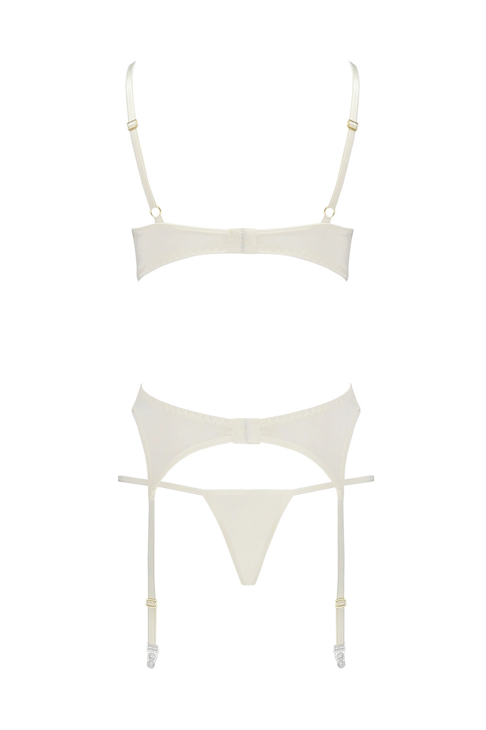 Casmir Inoe set Nocna komplet biustonosz + stringi + pas do pończoch, ecru