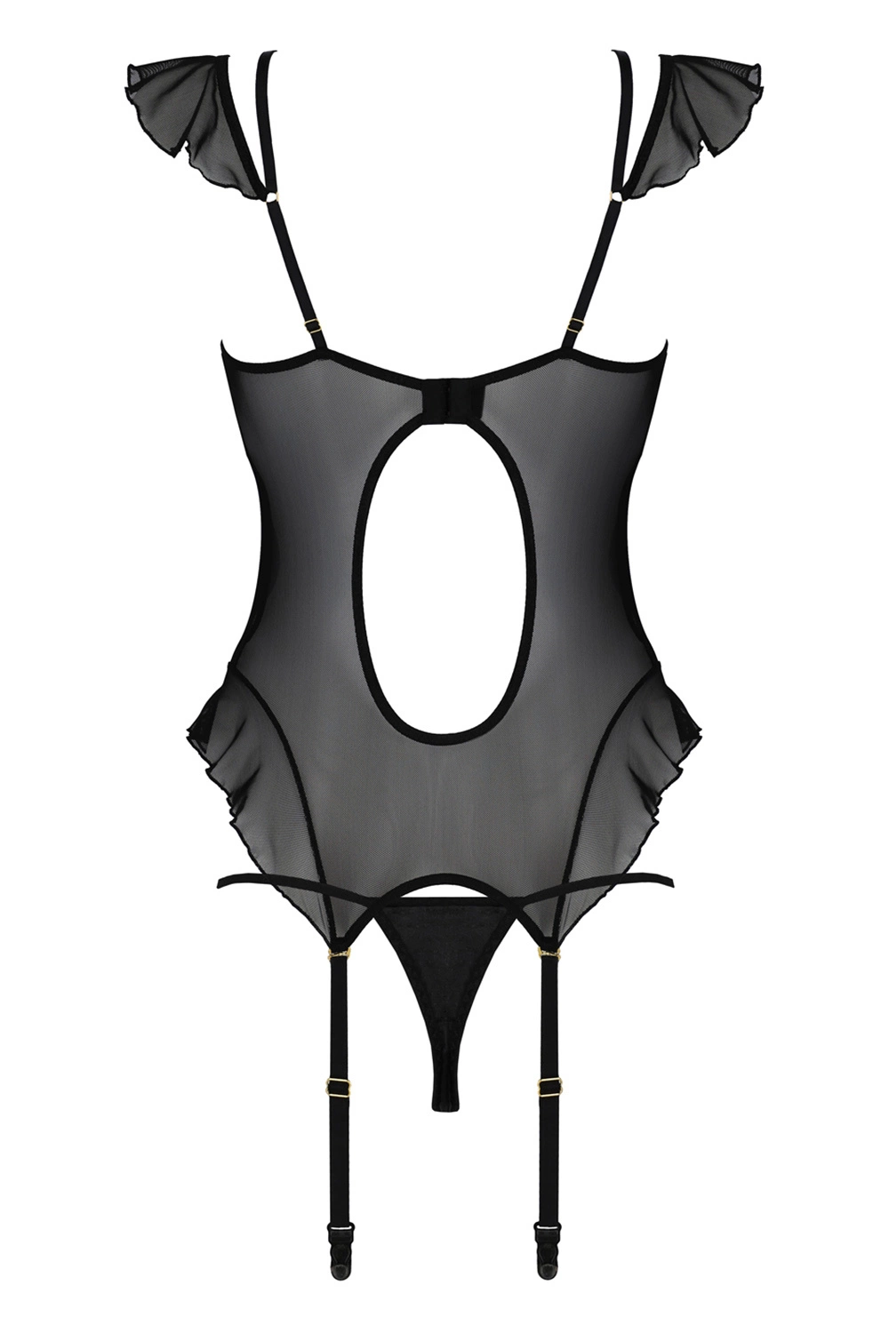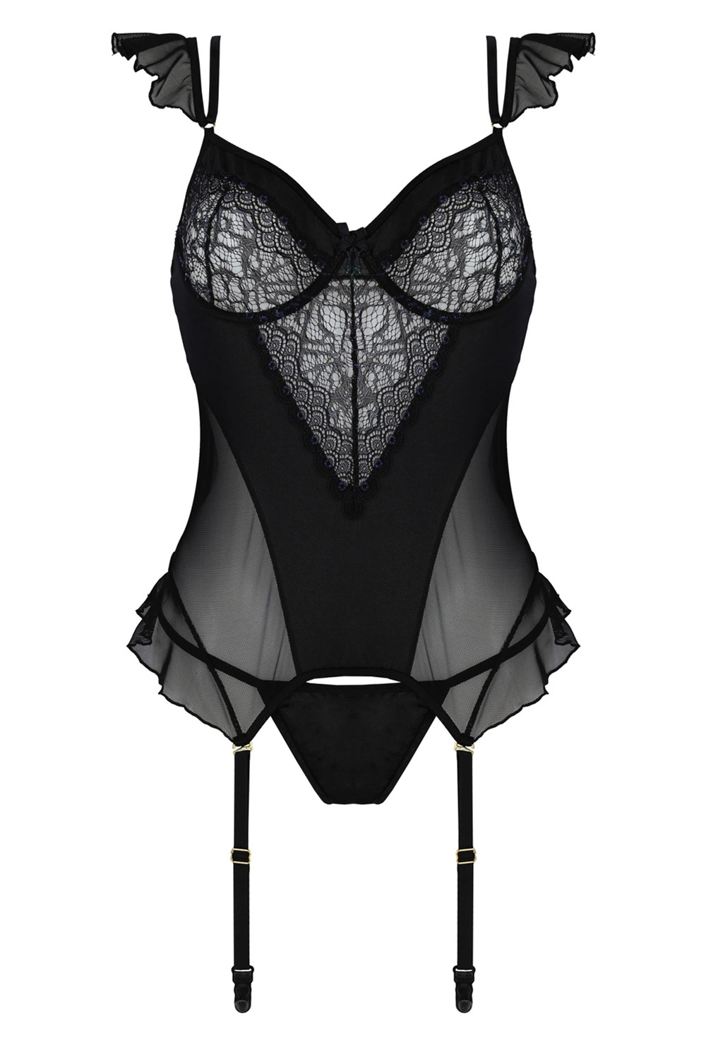 Gorset marki Casmir. Model Kitasana corset. Produkt został wykonany z 85% poliamid, 8% elastan, 7% poliester. Miejsce zapięcia: tył. Troczki są regulowane. Pas z troczkami. Gorset zapinany na haftki. Posiada druty, które podpierają piersi odpowiednio je kształtując. Produkt damski. Produkt posiada regulowane ramiączka. Majtki biodrówki.