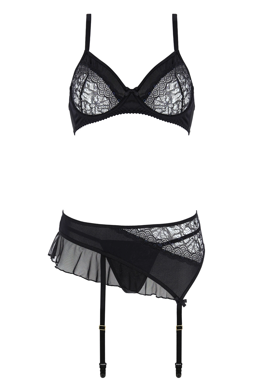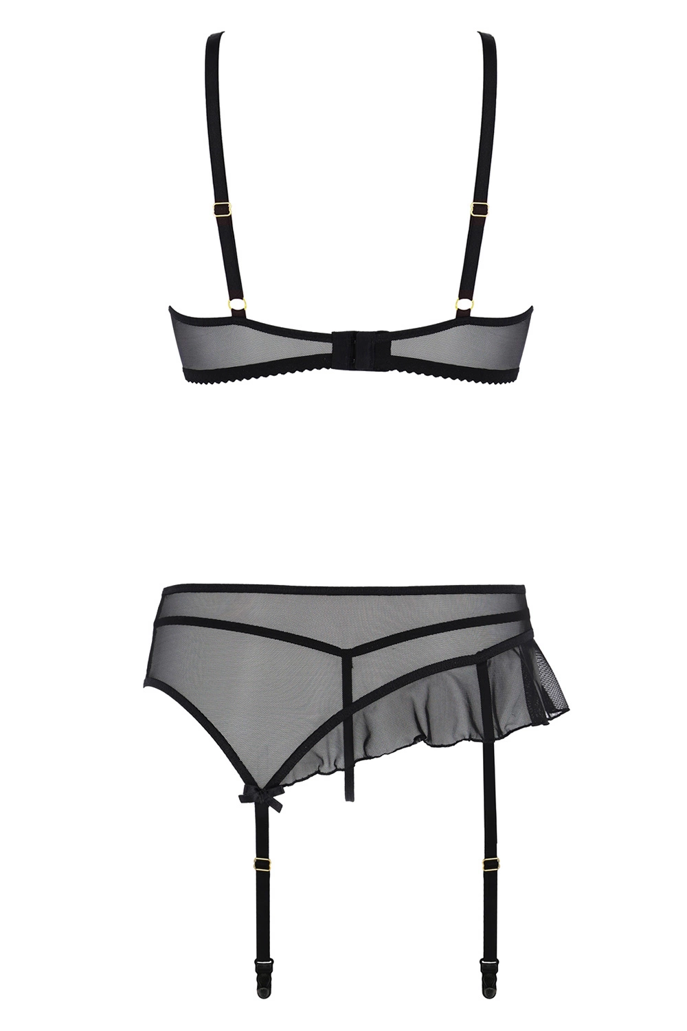 Casmir Kitasana set Nocna komplet biustonosz + stringi + pas do pończoch, black
