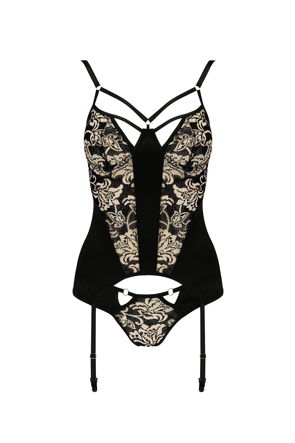 Gorset marki Casmir. Model Victoria corset. Produkt został wykonany z 85% poliamid, 8% elastan, 7% poliester. Troczki są regulowane. Pas z troczkami. Posiada druty, które podpierają piersi odpowiednio je kształtując. Produkt posiada regulowane ramiączka. Produkt damski. Majtki klasyczne.