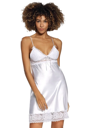 Nocna marki Dkaren. Model Agatha. Produkt został wykonany z 100% poliester. Haczyki do ramiączek plastikowe. Produkt posiada regulowane ramiączka. Długość: mini. Produkt damski. Rodzaj dekoltu: szpic.