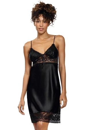 Nocna marki Dkaren. Model Agatha. Produkt został wykonany z 100% poliester. Haczyki do ramiączek plastikowe. Produkt posiada regulowane ramiączka. Długość: mini. Produkt damski. Rodzaj dekoltu: szpic.
