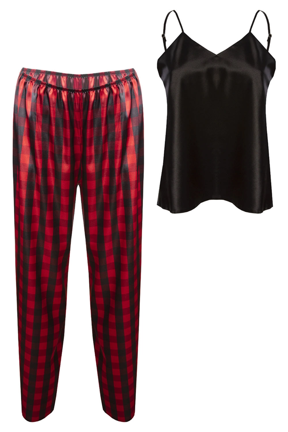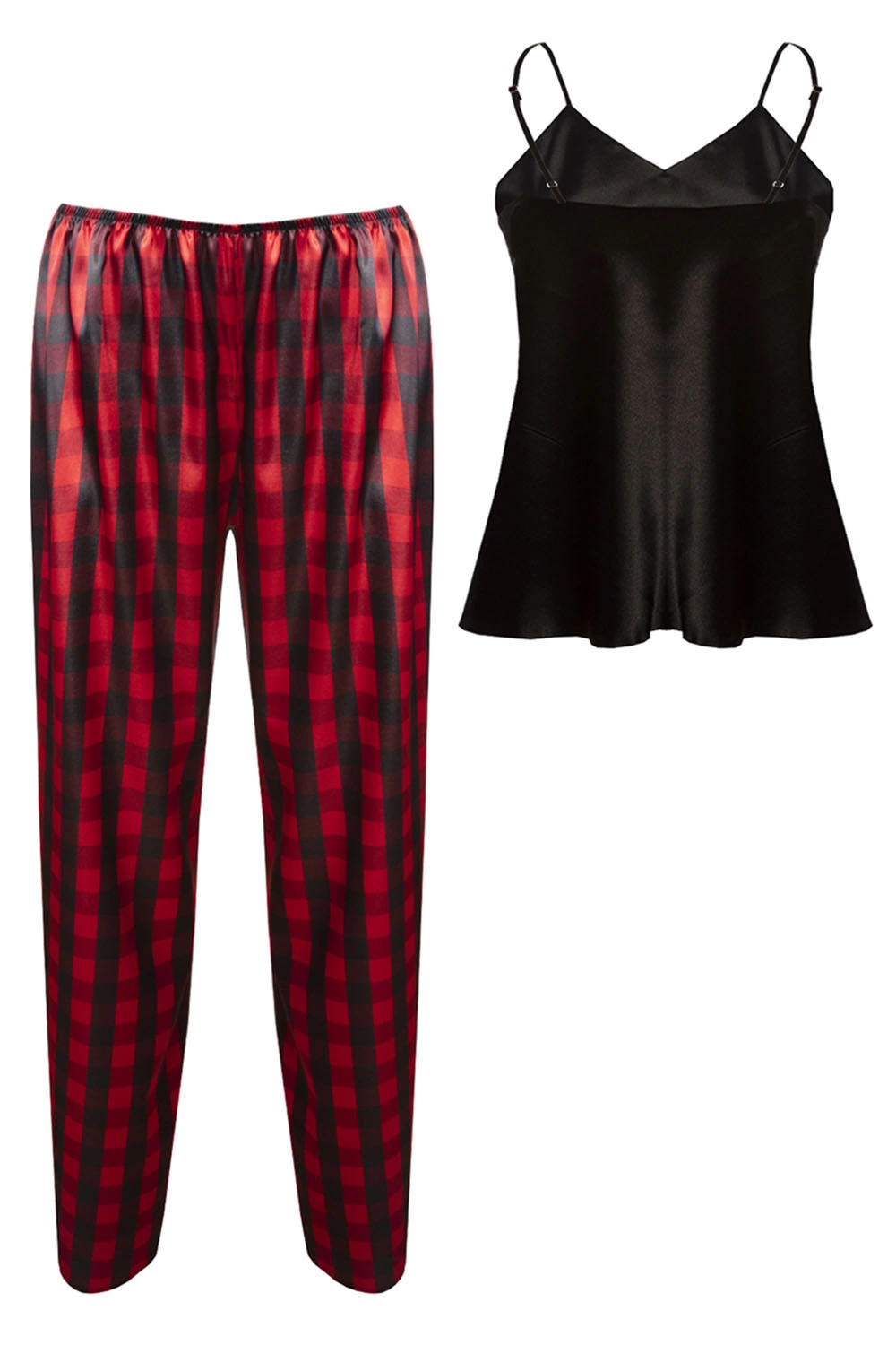 Dkaren DK-KI-017 Nocna komplet top + spodnie, czarny-krata