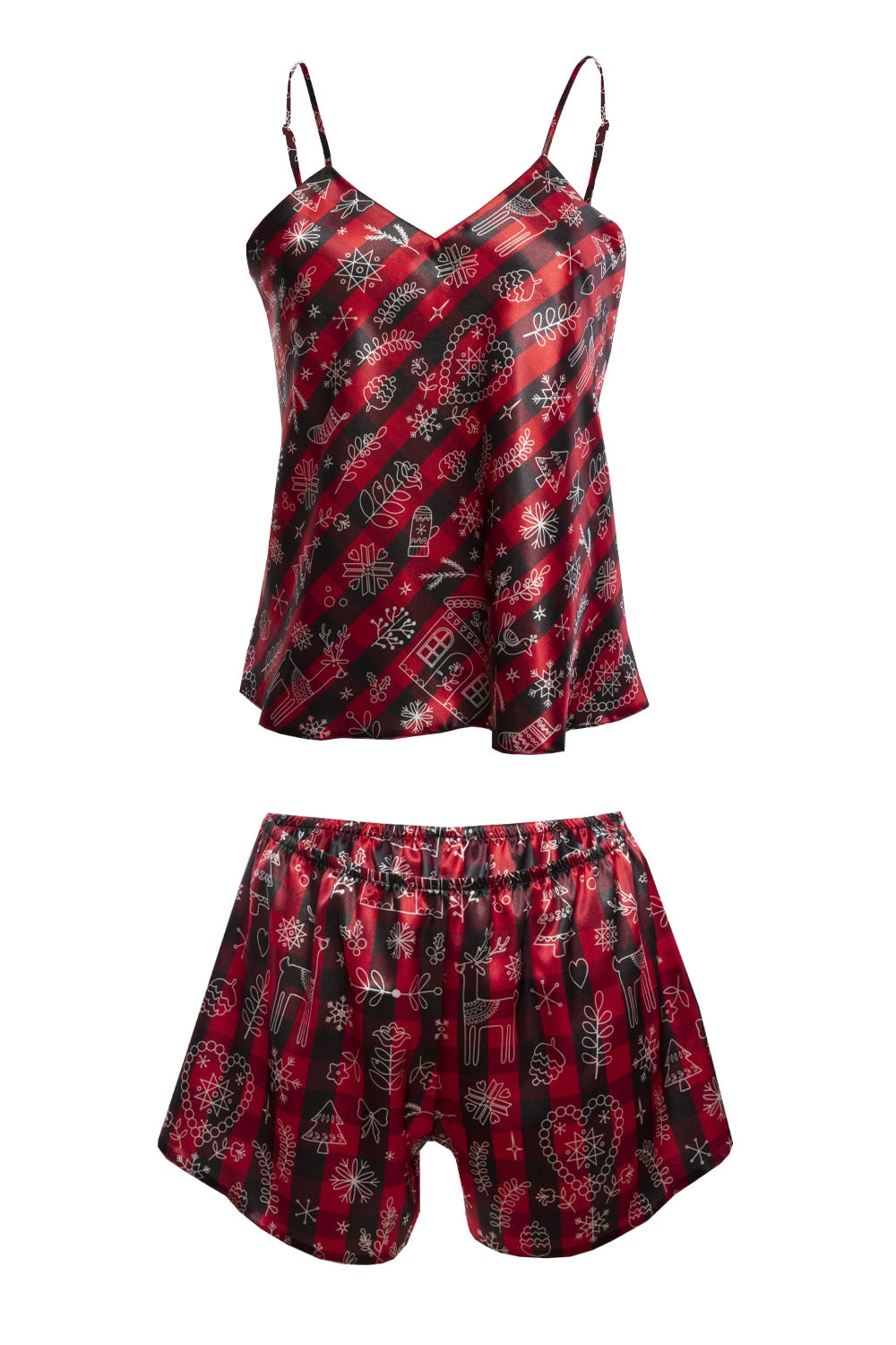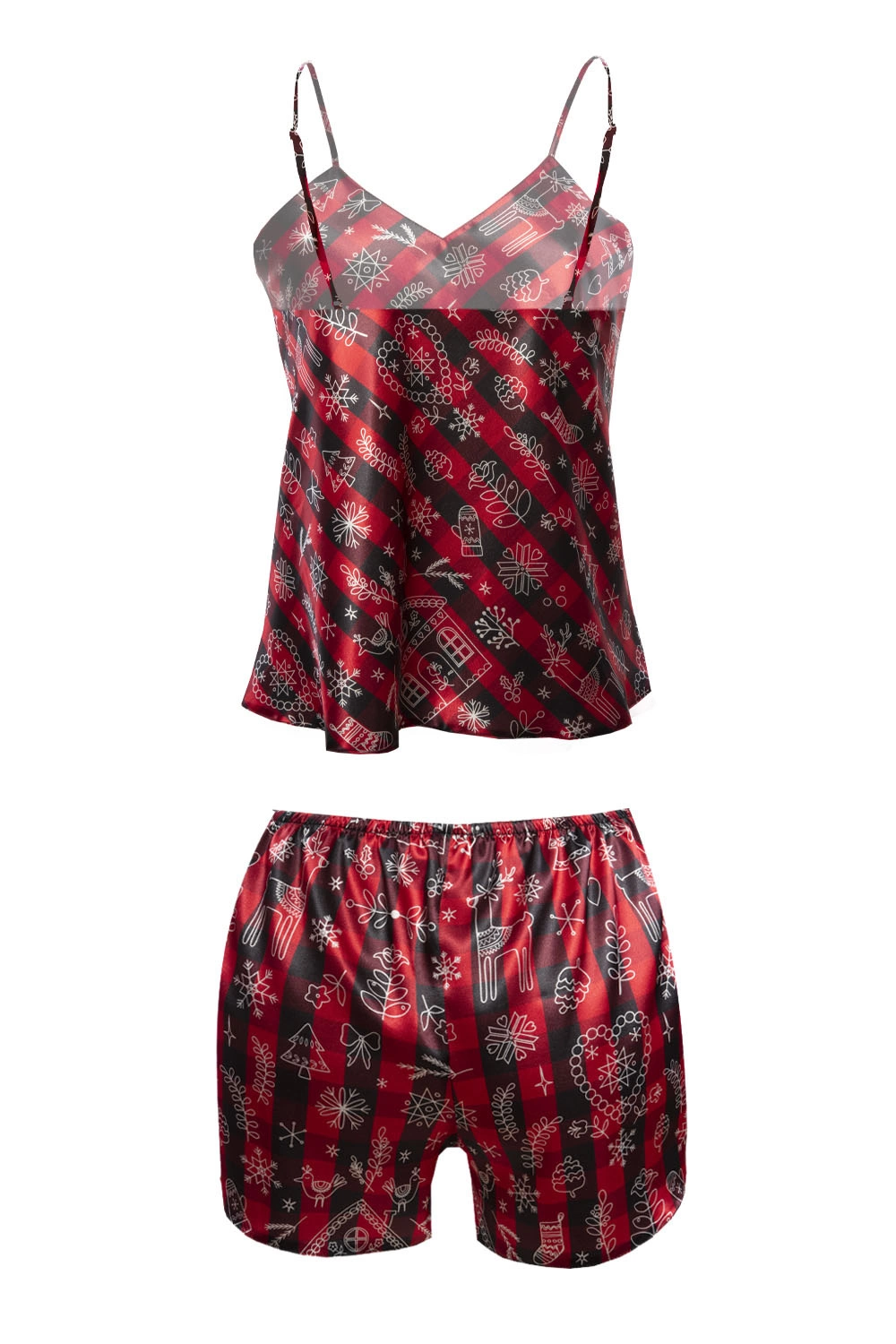 Dkaren DK-KK-012 Nocna komplet top + szorty, czerwono-czarny