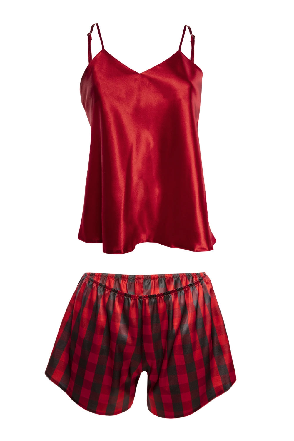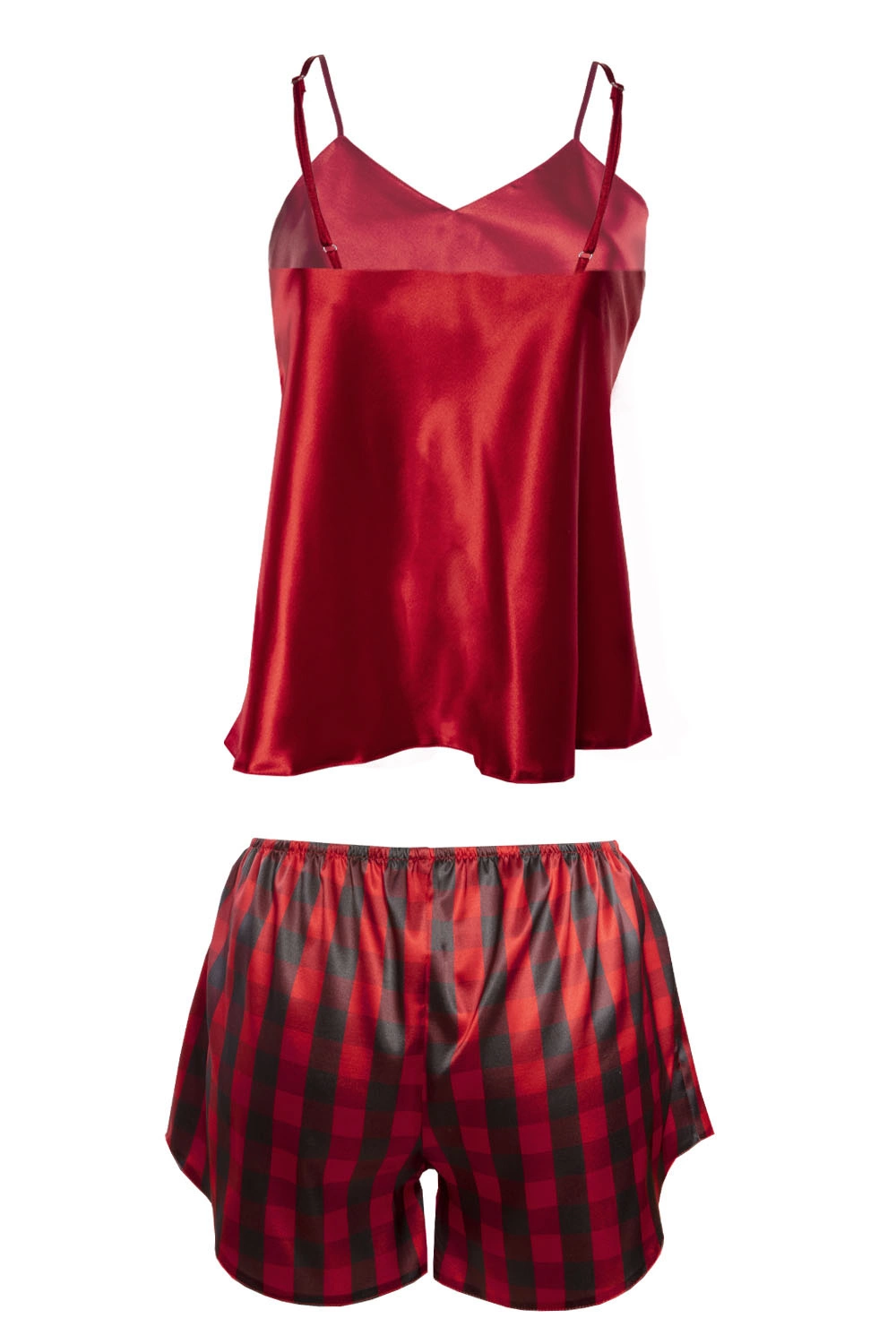 Dkaren DK-KK-016 Nocna komplet top + szorty, czerwony-krata