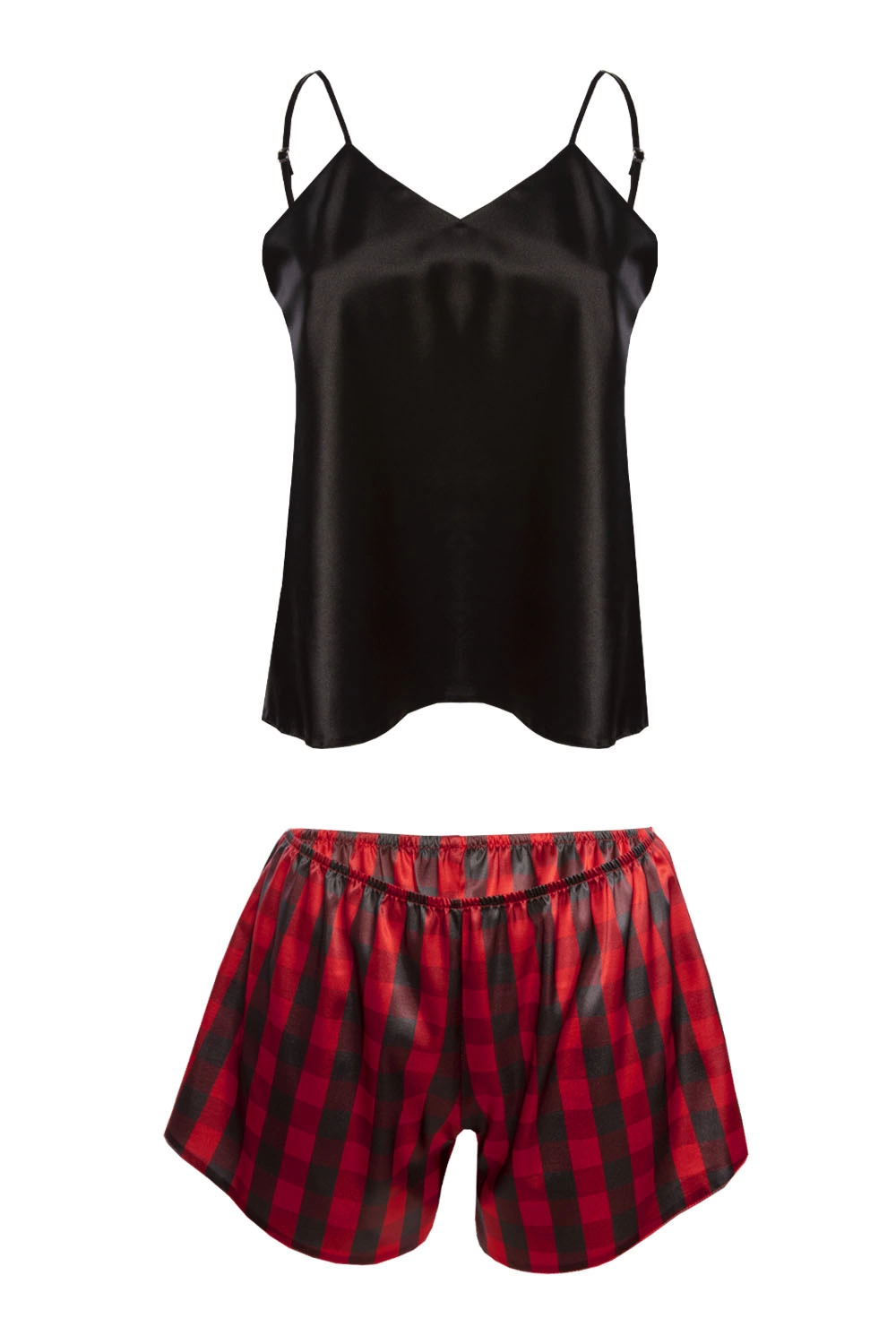 Dkaren DK-KK-017 Nocna komplet top + szorty, czarny-krata