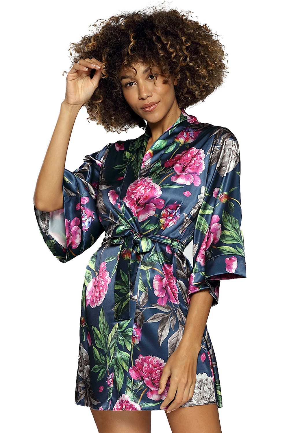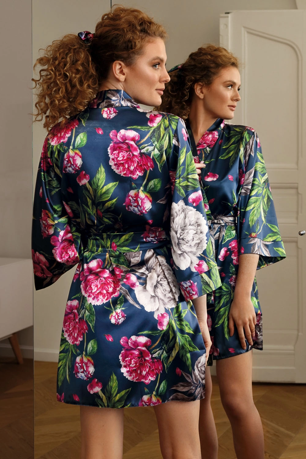 Nocna marki Dkaren. Model DK-P-001. Produkt został wykonany z 100% poliester. Zalety produktu: satyna kwiaty prezent. Miejsce zapięcia: przód. Nocna zapinany na wiązane. Długość rękawa: długi rękaw. Produkt damski.