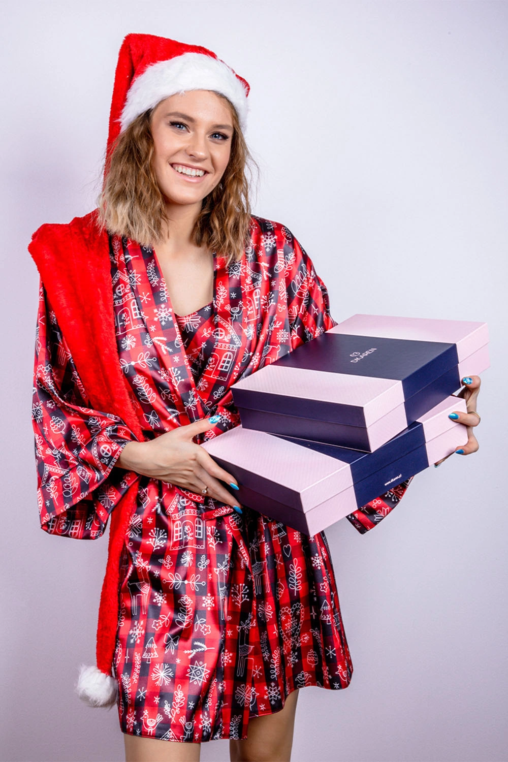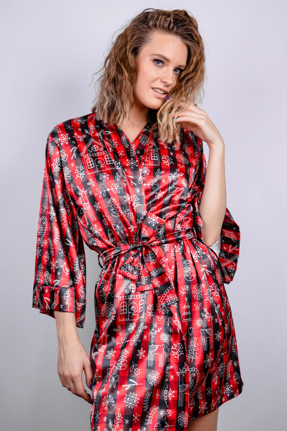 Dkaren DK-P-012 Nocna peniuar, czerwono-czarny
