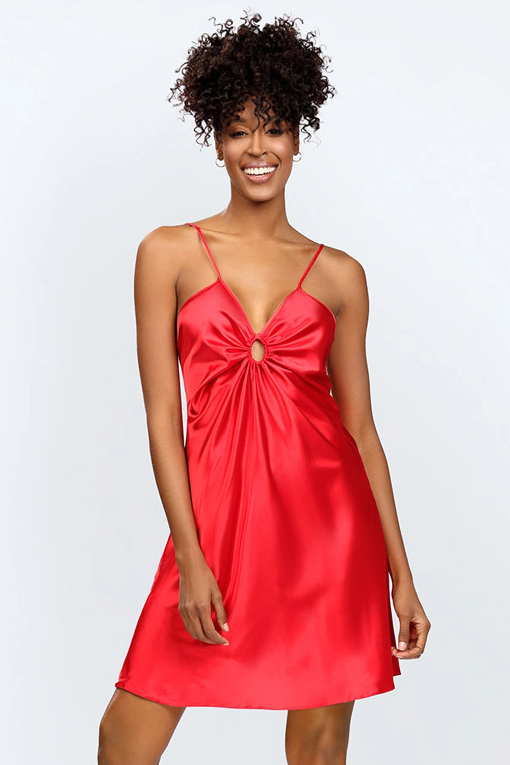 Nocna marki Dkaren. Model Kamaria. Produkt został wykonany z 100% poliester. Produkt posiada regulowane ramiączka. Długość: mini. Produkt damski.