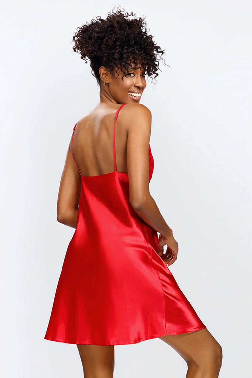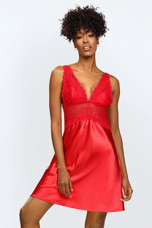 Nocna marki Dkaren. Model Neema. Produkt został wykonany z 100% poliester. Długość rękawa: na ramiączkach. Produkt posiada regulowane ramiączka. Długość: mini. Produkt damski. Rodzaj dekoltu: szpic.