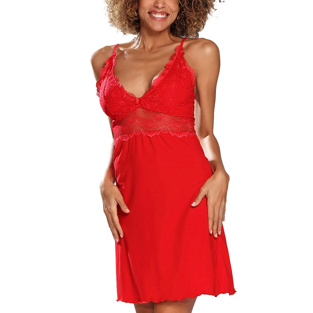 Nocna marki Dkaren. Model Pia. Produkt został wykonany z 92% wiskoza, 8% elastan. Produkt posiada regulowane ramiączka. Długość: mini. Produkt damski. Rodzaj dekoltu: szpic.