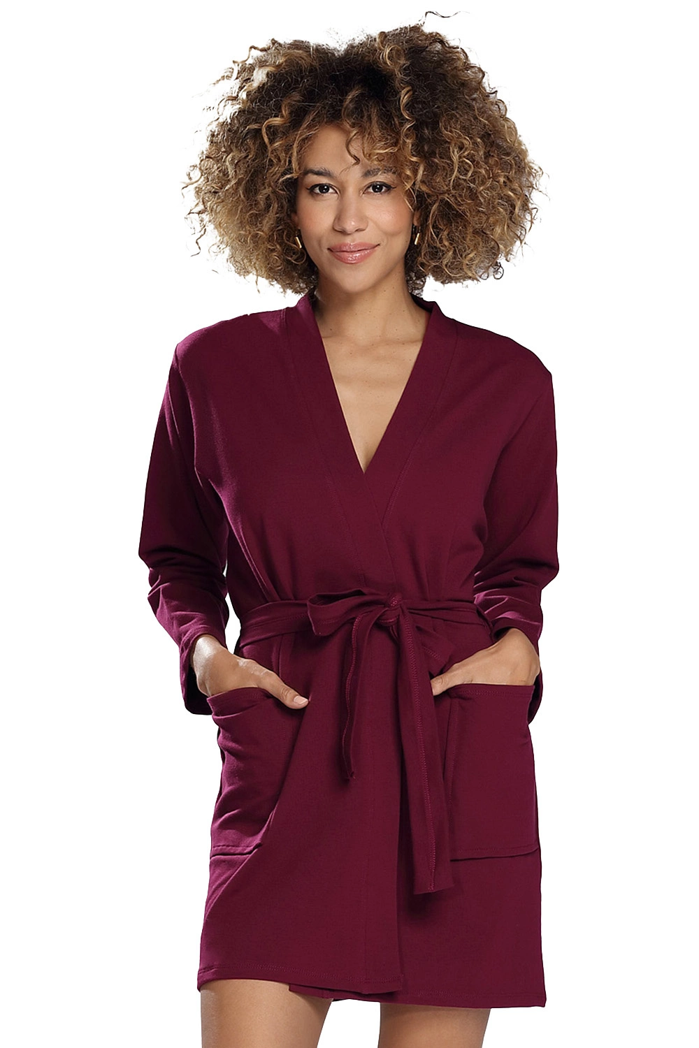 Nocna marki Dkaren. Model Pola. Produkt został wykonany z 95% bawełna, 5% elastan. Miejsce zapięcia: przód. Posiada kieszenie. Nocna zapinany na wiązane. Długość rękawa: długi rękaw. Długość: krótkie. Produkt damski.