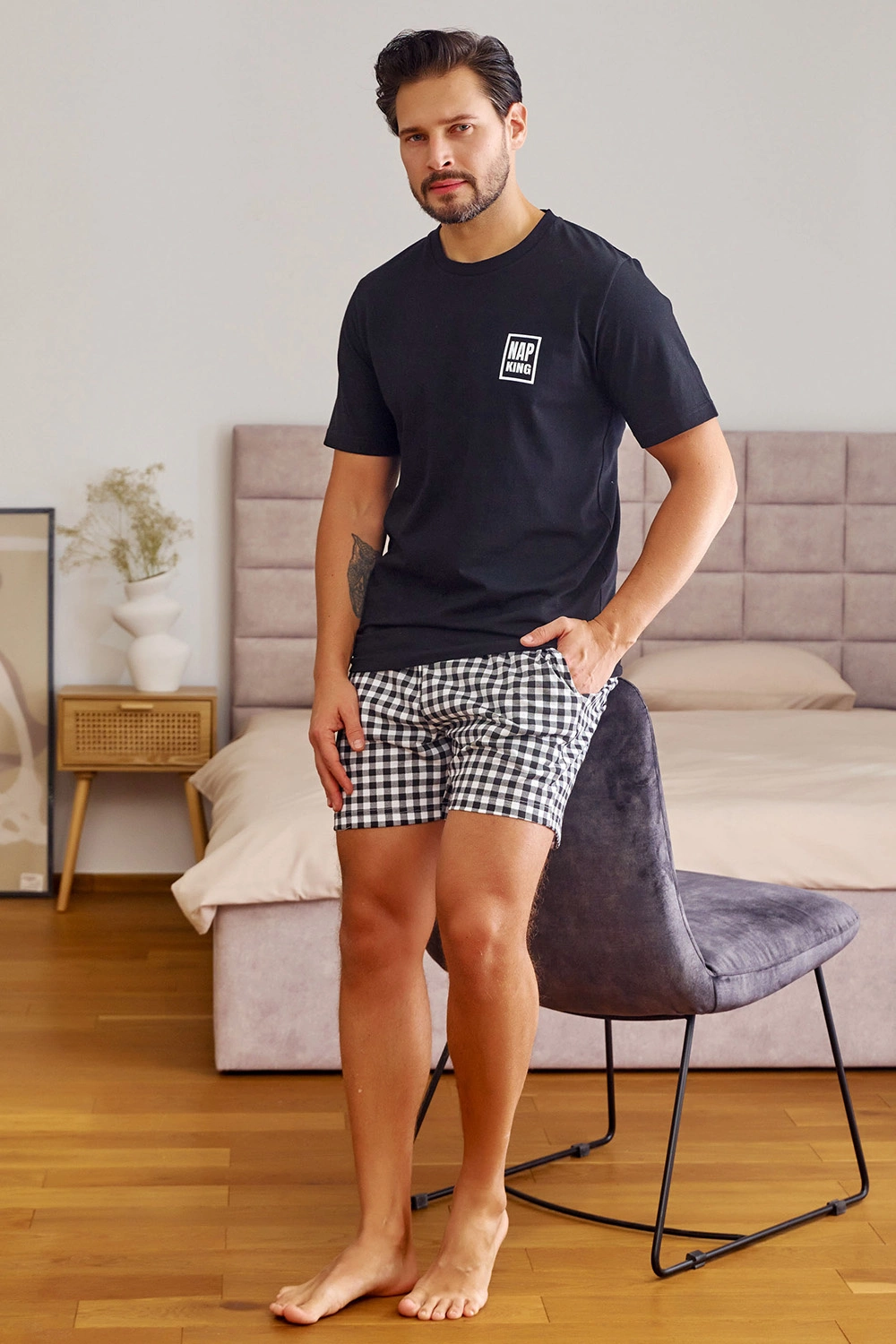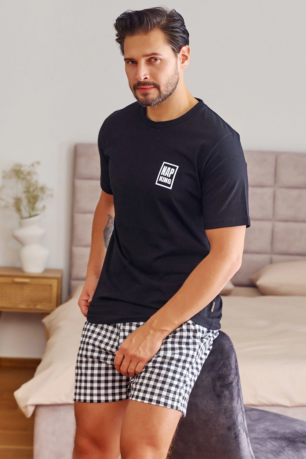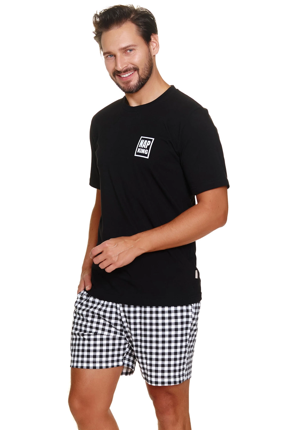 Nocna marki Doctor Nap. Model PMB.7214. Produkt został wykonany z 100% bawełna. Posiada kieszenie. Długość: krótkie. Długość rękawa: krótki. Rodzaj dekoltu: okrągły. Produkt męski.