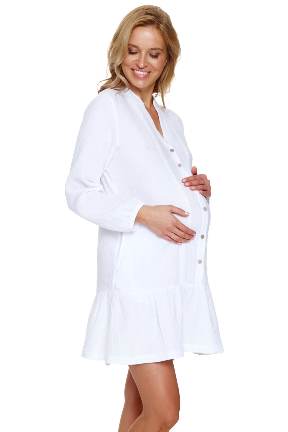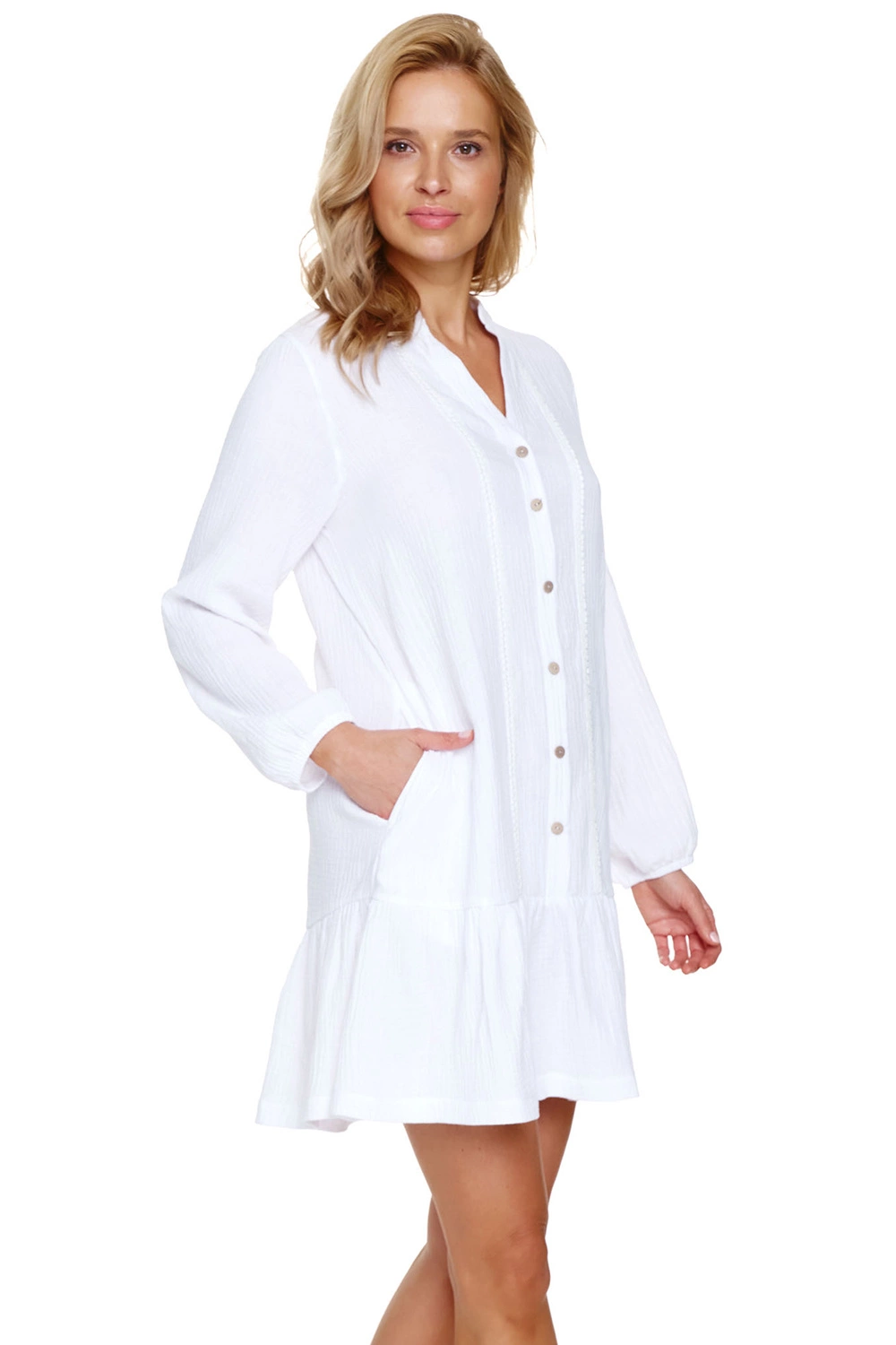 Nocna marki Doctor Nap. Model TCB.7237. Produkt został wykonany z 100% bawełna. Miejsce zapięcia: przód. Długość rękawa: długi rękaw. Nocna zapinany na guziki. Długość: krótkie. Produkt damski. Posiada kieszenie.
