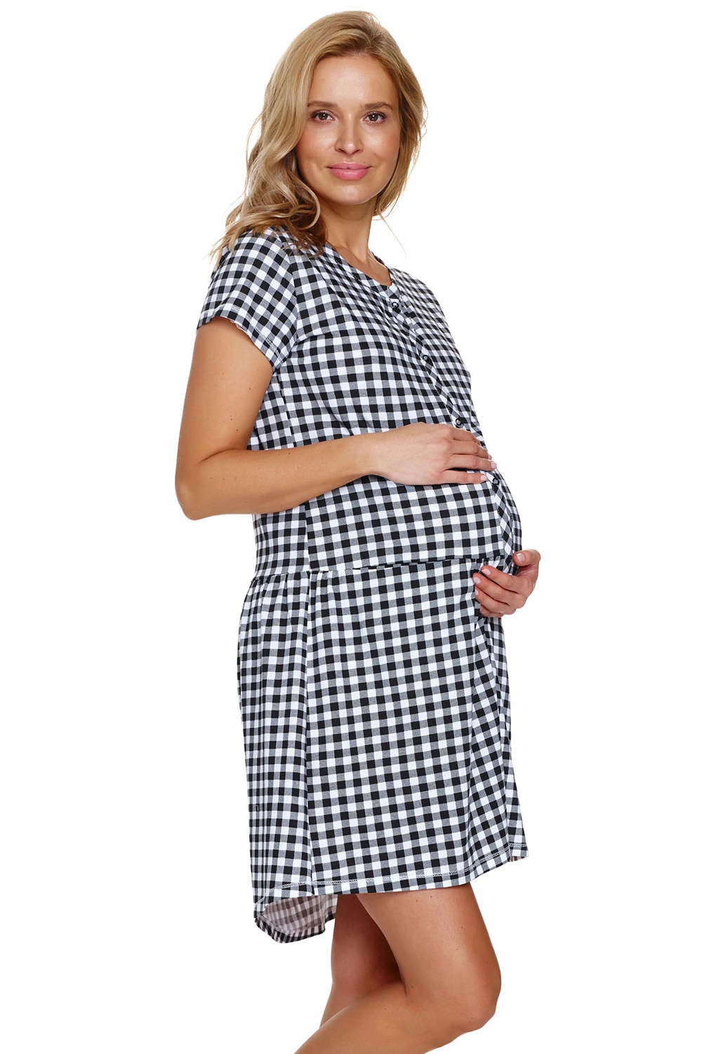 Nocna marki Doctor Nap. Model TCB.9444. Produkt został wykonany z 100% bawełna. Długość: midi. Miejsce zapięcia: przód. Długość rękawa: krótki. Rodzaj dekoltu: okrągły. Odzież ciążowa. Produkt damski.