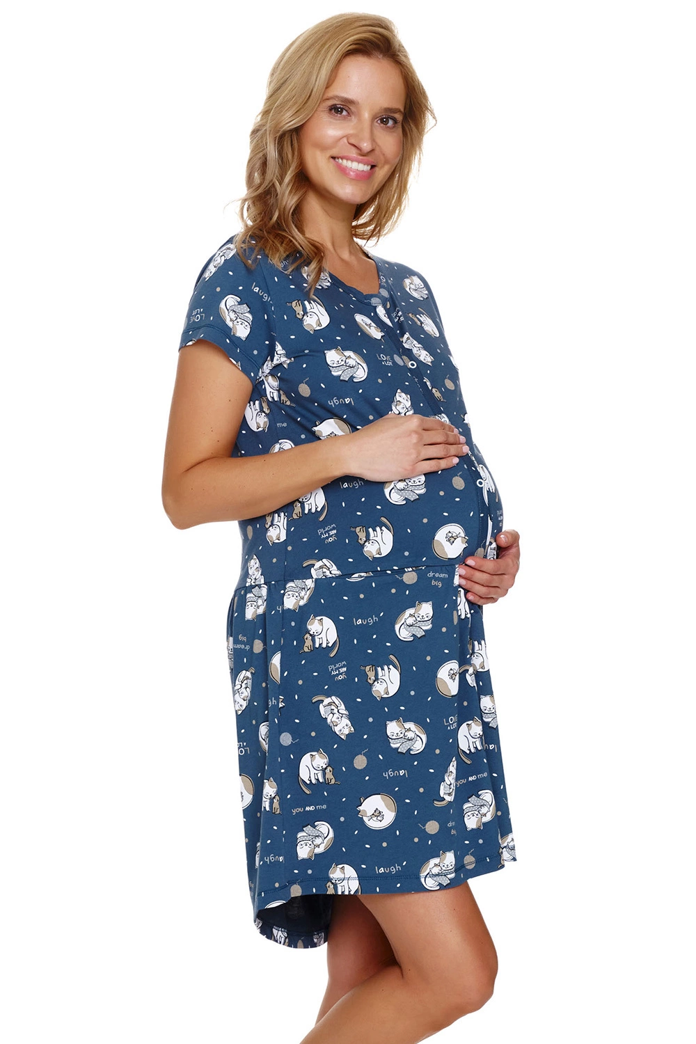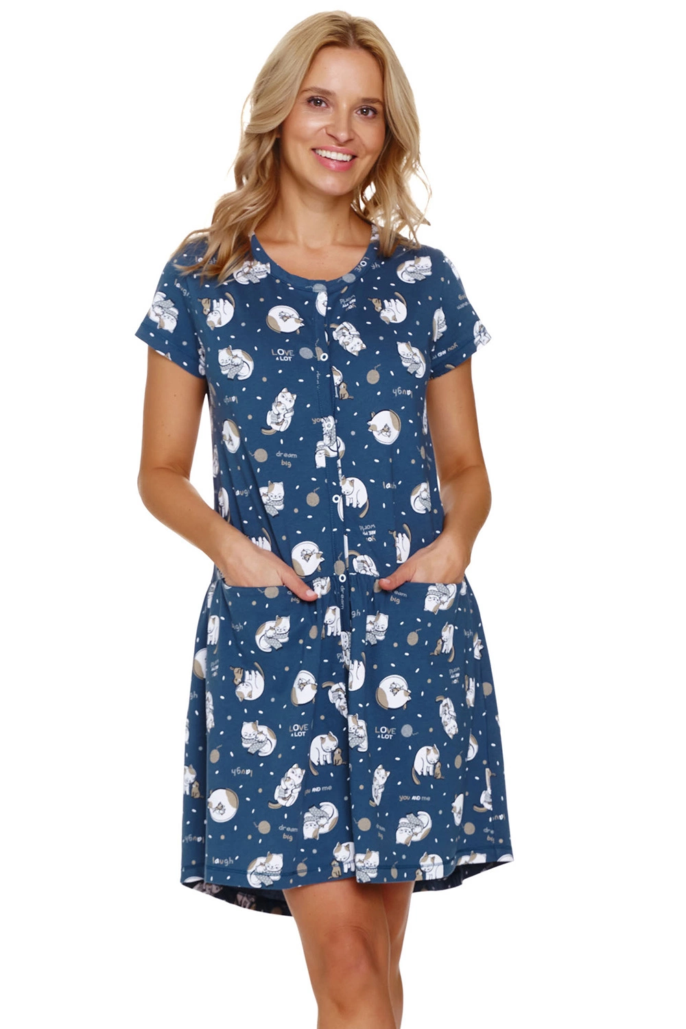 Nocna marki Doctor Nap. Model TCB.9444. Produkt został wykonany z 100% bawełna. Długość: midi. Miejsce zapięcia: przód. Długość rękawa: krótki. Rodzaj dekoltu: okrągły. Odzież ciążowa. Produkt damski.
