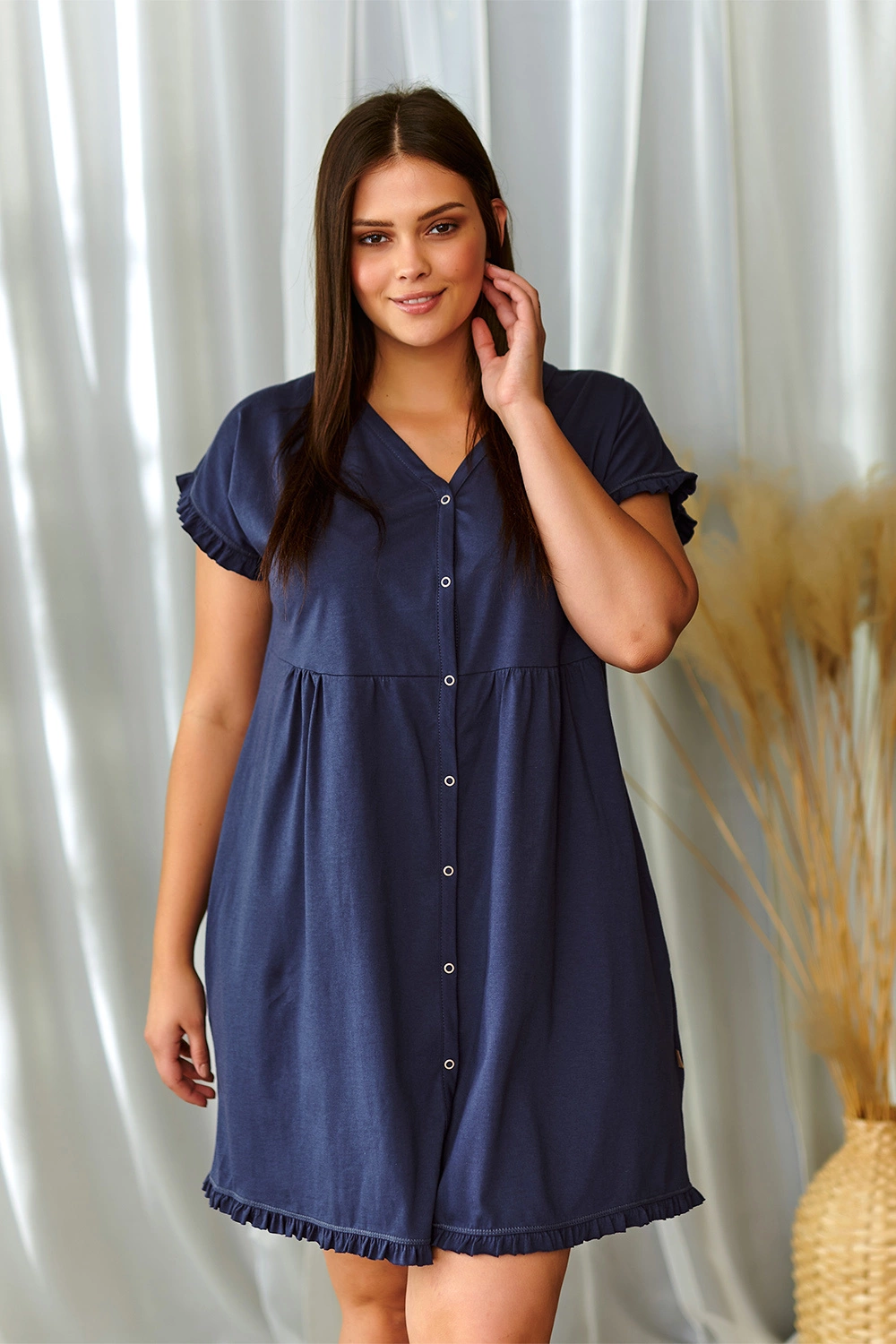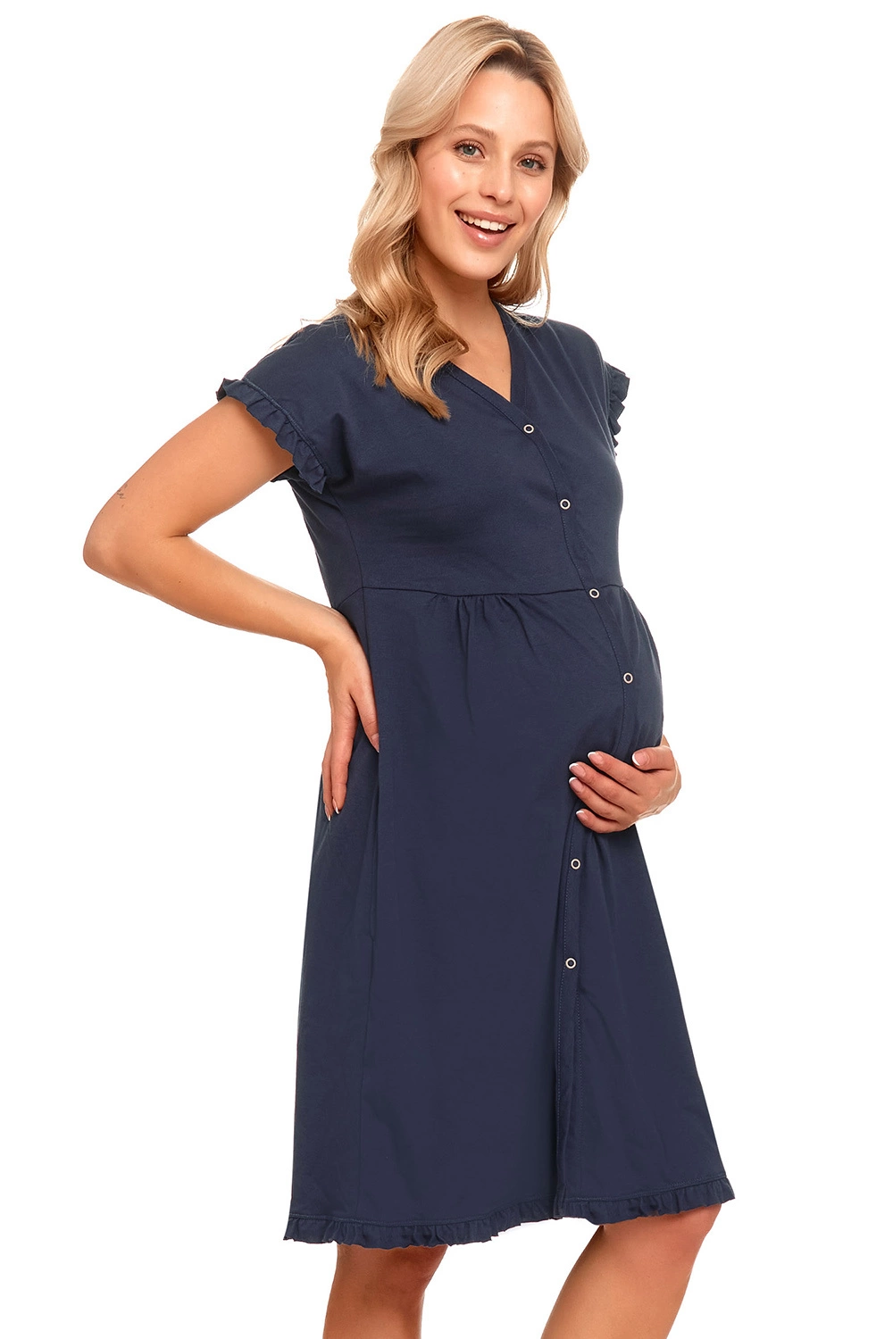 Nocna marki Doctor Nap. Model TCB.9600. Produkt został wykonany z 100% bawełna. Posiada kieszenie. Długość: midi. Długość rękawa: krótki. Rodzaj dekoltu: w serek. Odzież ciążowa. Produkt damski.
