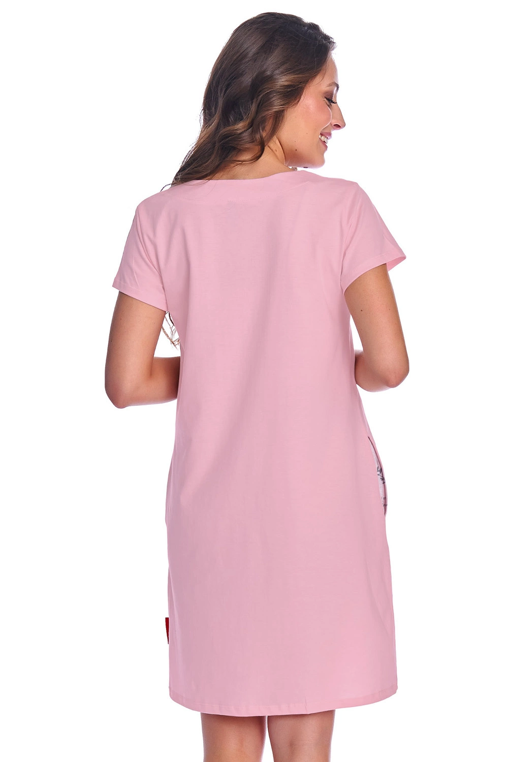 Nocna marki Doctor Nap. Model TCB.9992. Produkt został wykonany z 100% bawełna. Rodzaj dekoltu: okrągły. Produkt damski. Długość rękawa: krótki. Posiada kieszenie. Odzież ciążowa. Nocna zapinany na zatrzaski.